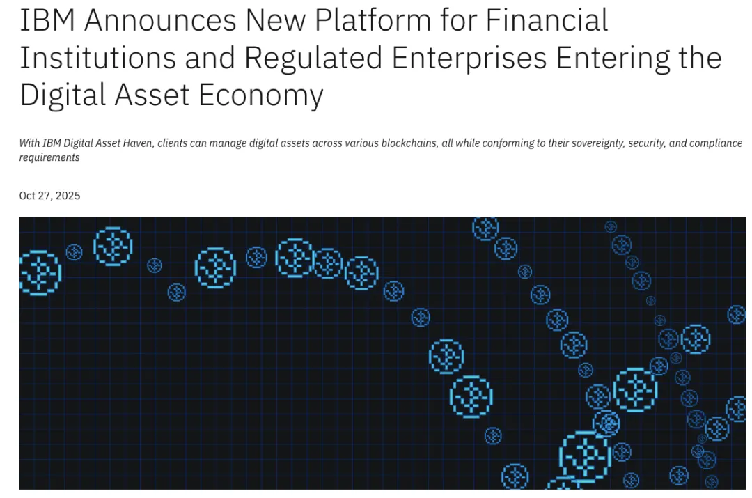 2025年10月,IBM宣布推出“IBM数字资产生态服务平台”——一个面向政府、金融机构和受监管企业的全栈式区块链服务平台。