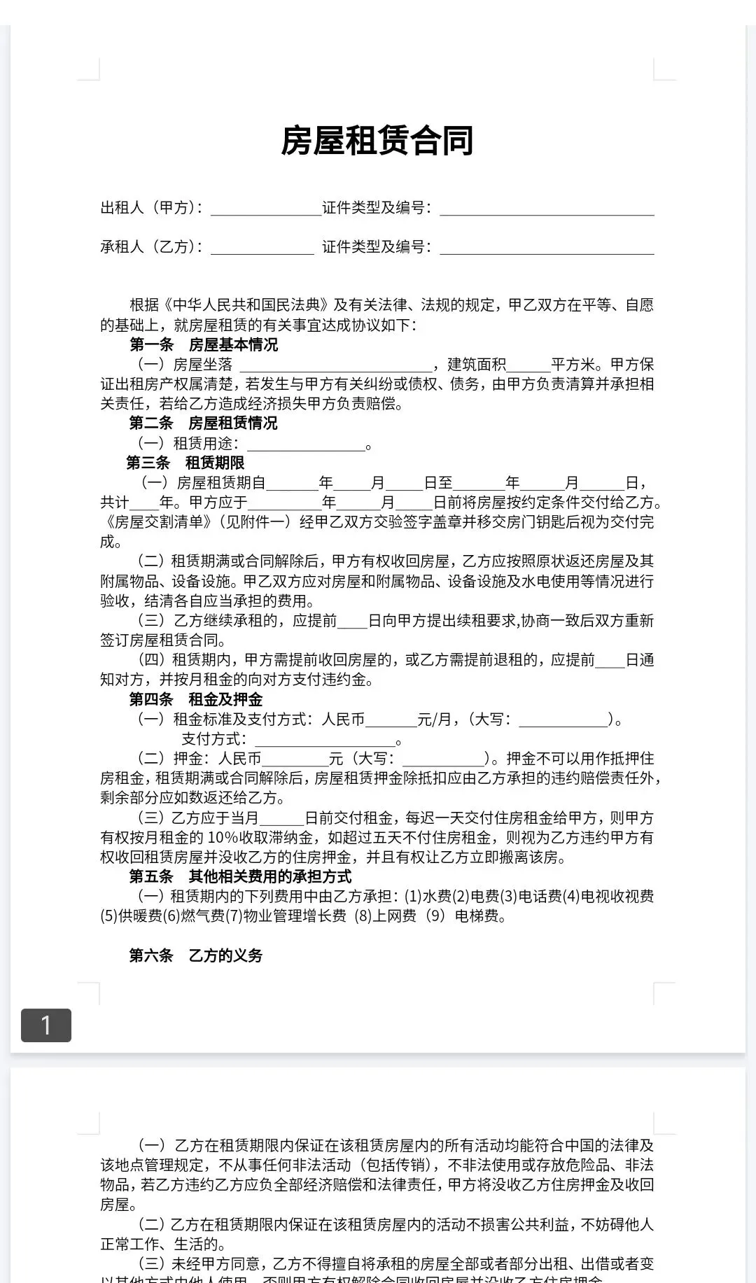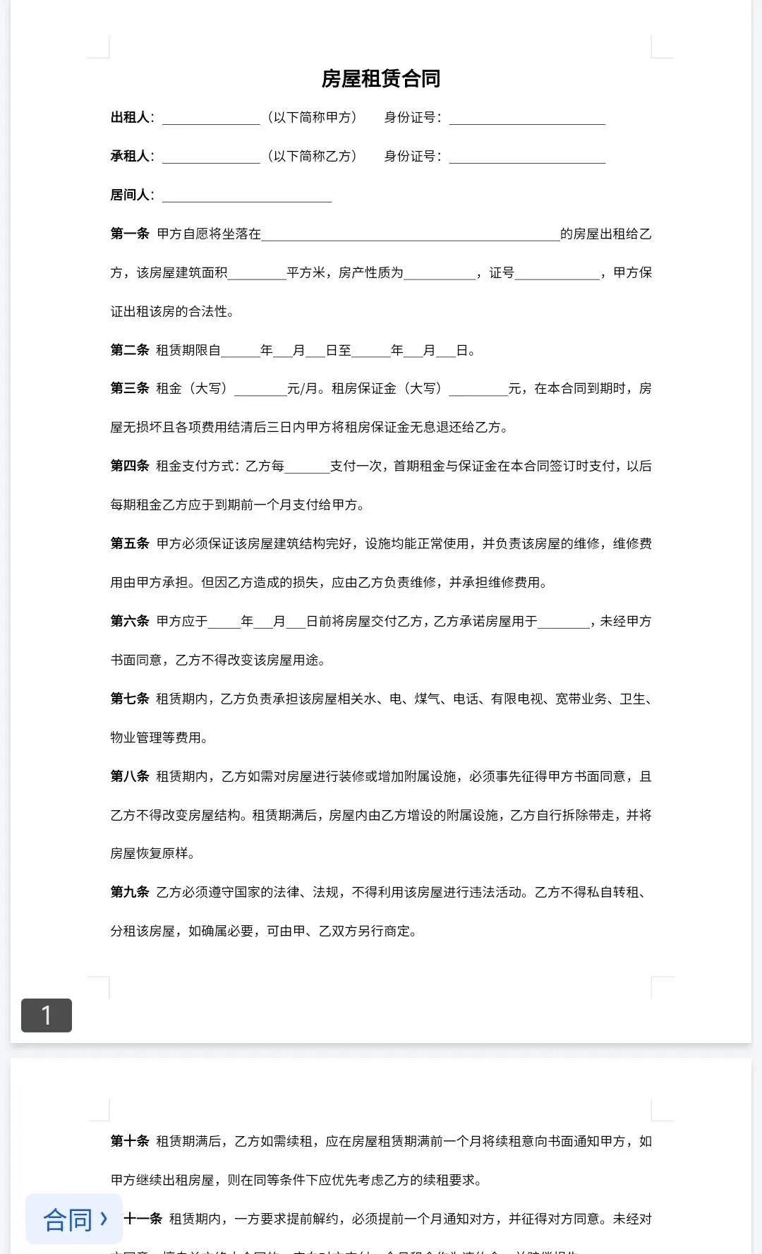 新版《房屋租赁合同模板》(电子版模板合集(免费下载)