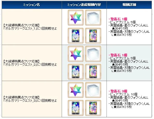 开启限时御主任务,挑战目前开启的3个奥尔加玛丽本,可以获得5个圣晶石、20个白方块、15组三星芙芙。
