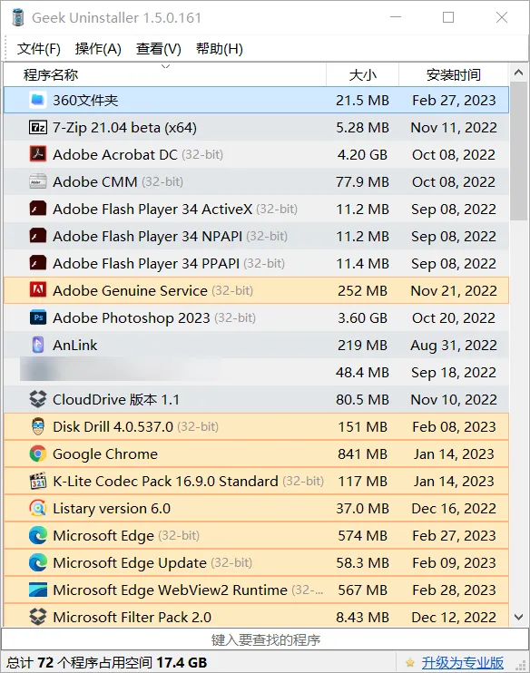 其他卸载的工具还有好多,我经常用到的是UninstallView,这款工具跟上面极客差不多,