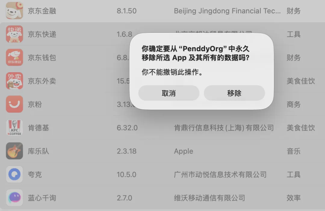按住 Command 键可以多选,选择后按「删除」键,或在顶部「编辑」菜单选择「删除」,就可以批量删除多个 App,类似下图。