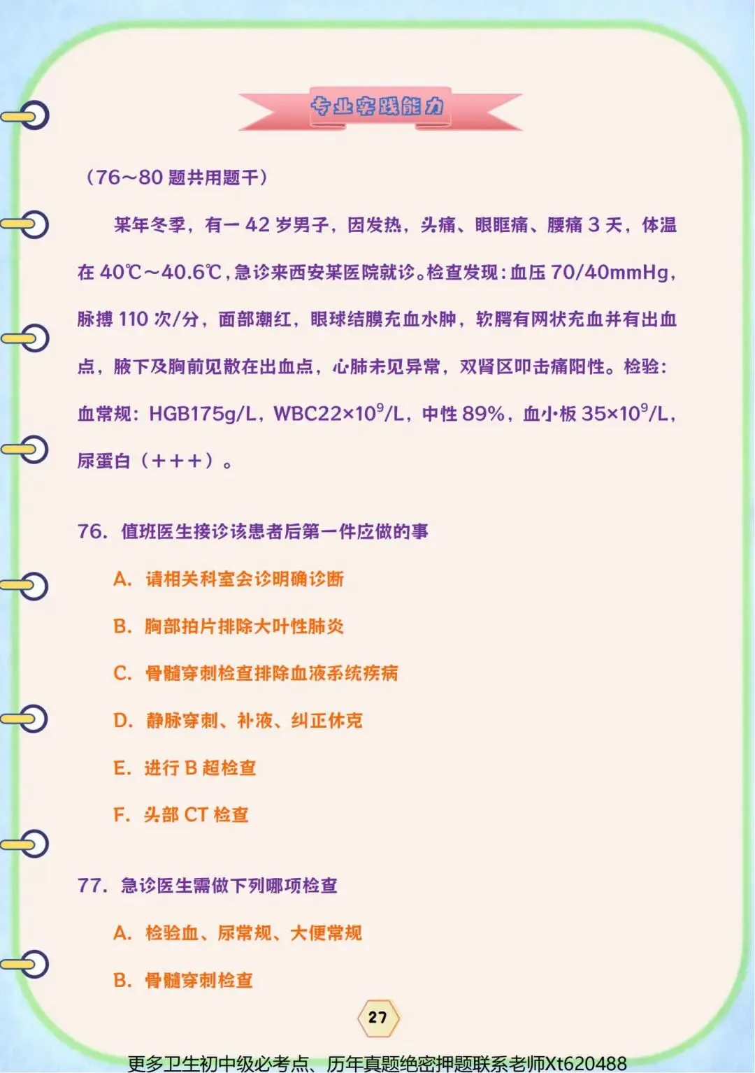 卫生初中级职称考前四页纸(目录上的专业都有,详情看目录)