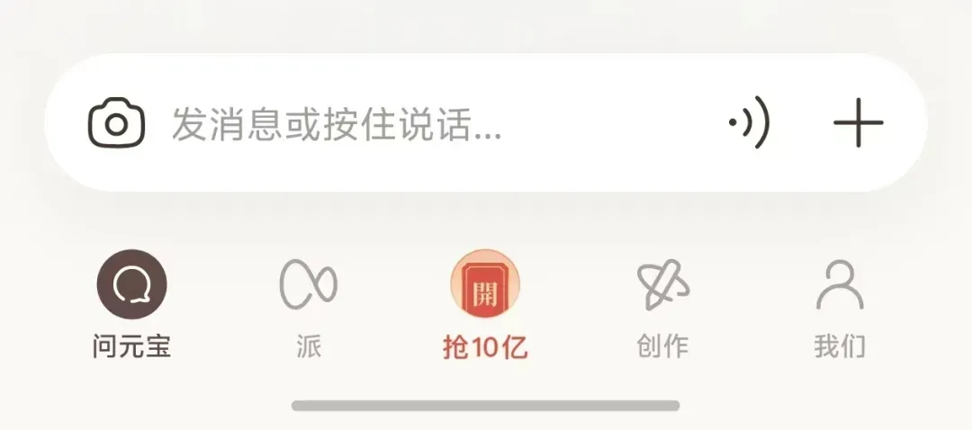 例如,其底部导航栏划分为“问元宝”、“派”、“创作”与“我们”四个版块,一目了然,与微信的呈现方式非常接近。