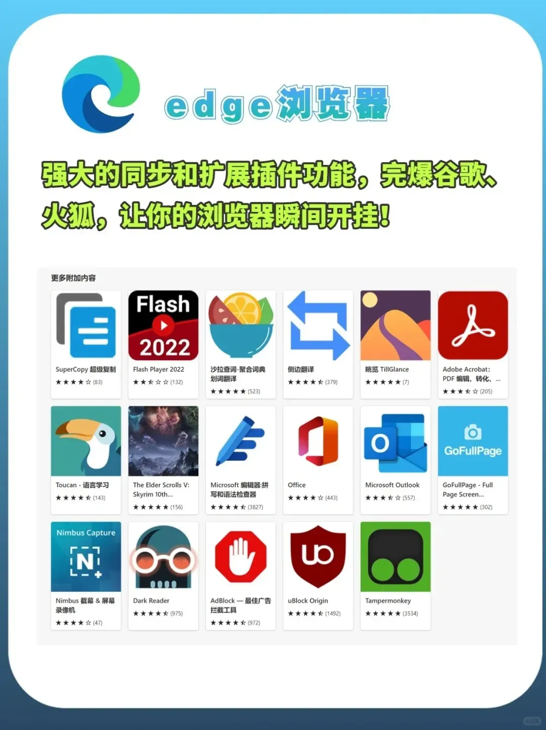 Edge浏览器 + 火绒安全现代电脑使用离不开浏览器和安全防护。Edge浏览器基于Chromium内核,不仅速度快、兼容性好,其插件生态更是强大无比。配合火绒安全这款轻量级安全卫士,可以有效拦截流氓软件和弹窗广告,让电脑保持清爽状态。火绒以其“流氓软件克星”的称号著称,占用资源极低,却能在后台默默守护你的系统安全。这对组合就像给电脑装上了一扇坚固的大门和一位警惕的保安,让你在数字世界里安心遨游。