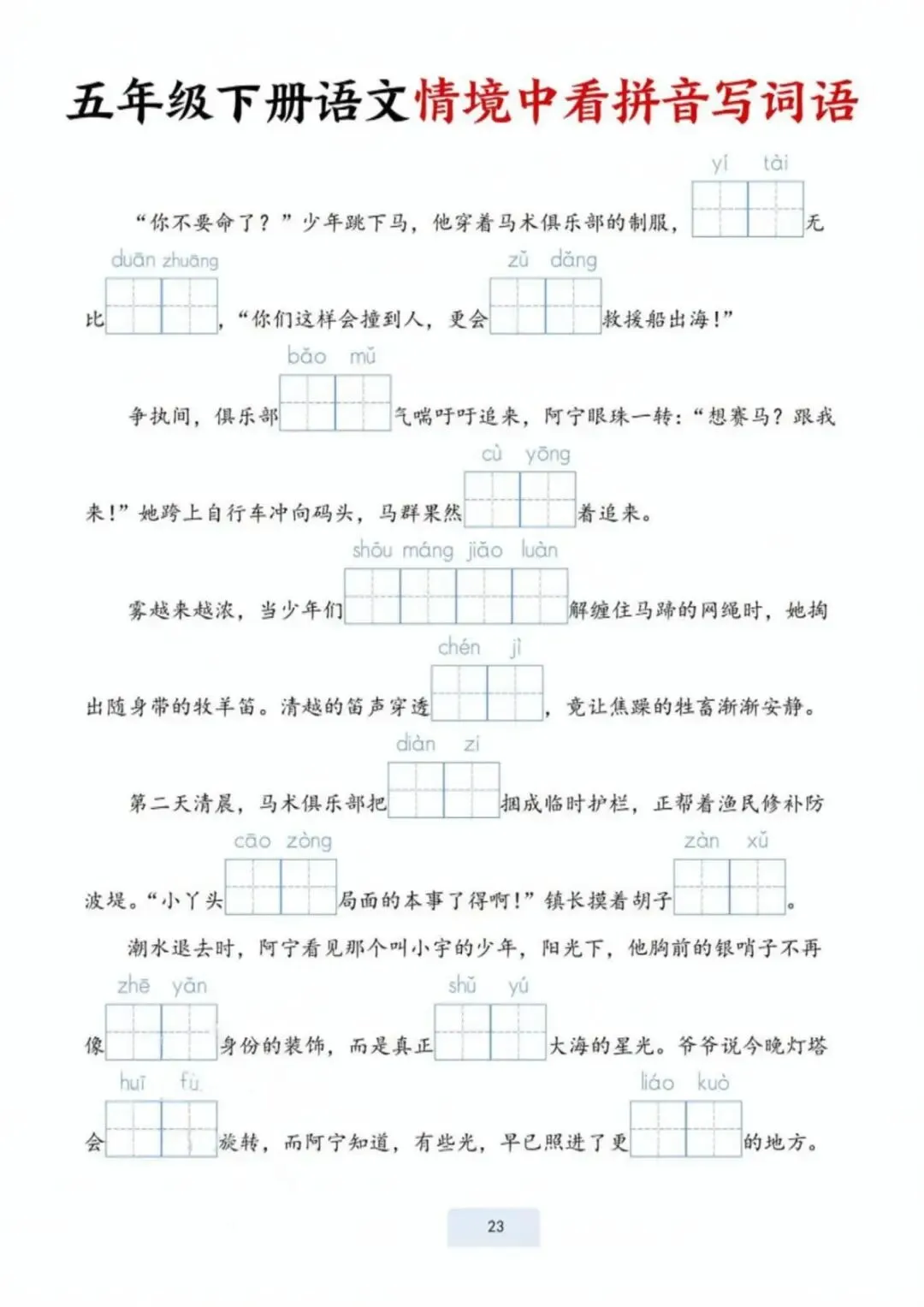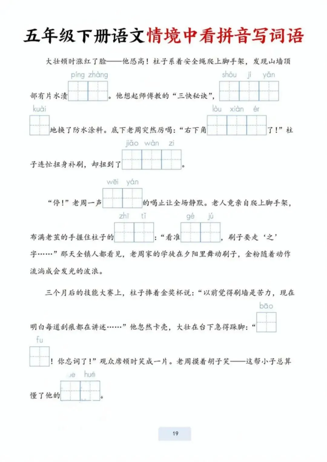五年级家长必看!孩子语文学习中,字词基础不扎实,看拼音写词语总出错?别愁啦!我们为大家整理了五年级下册语文看拼音写词语的情境资料。