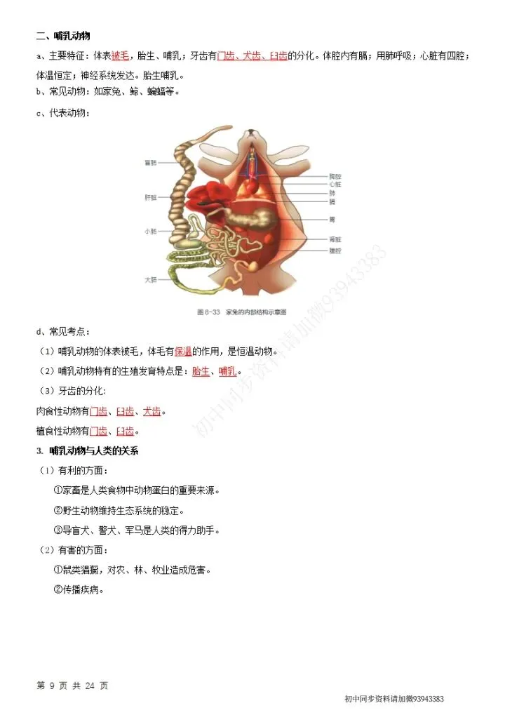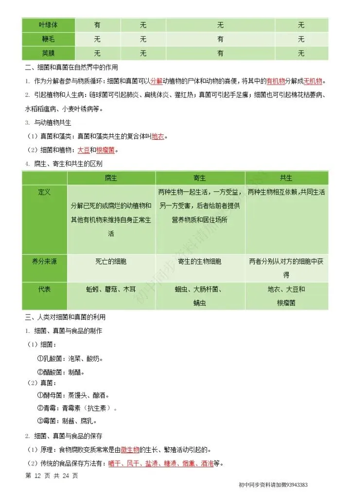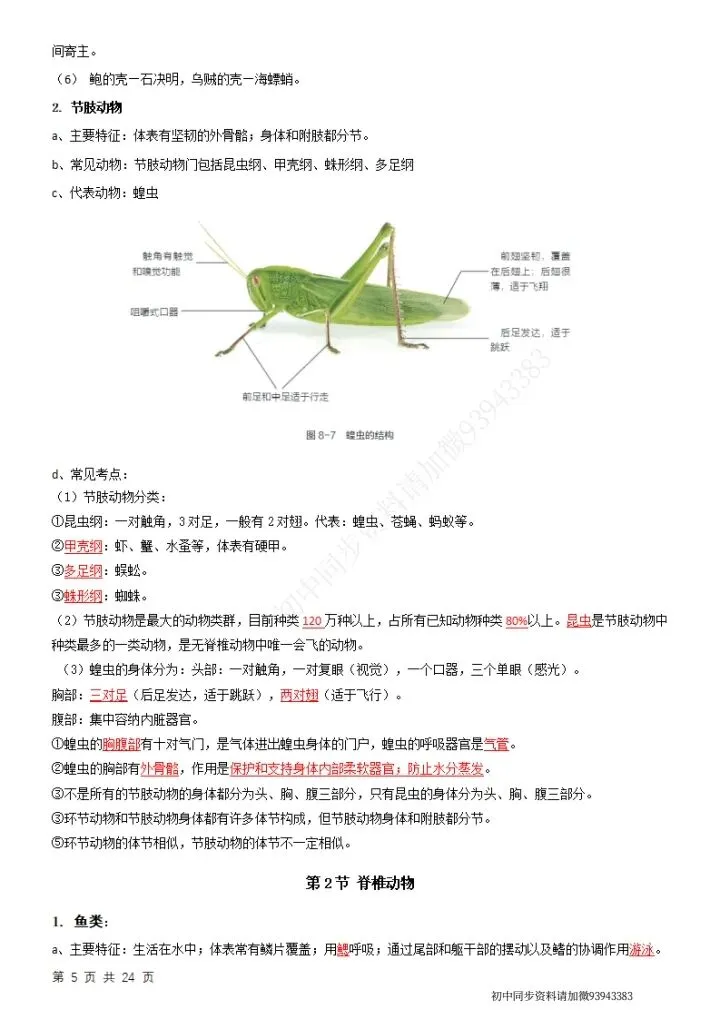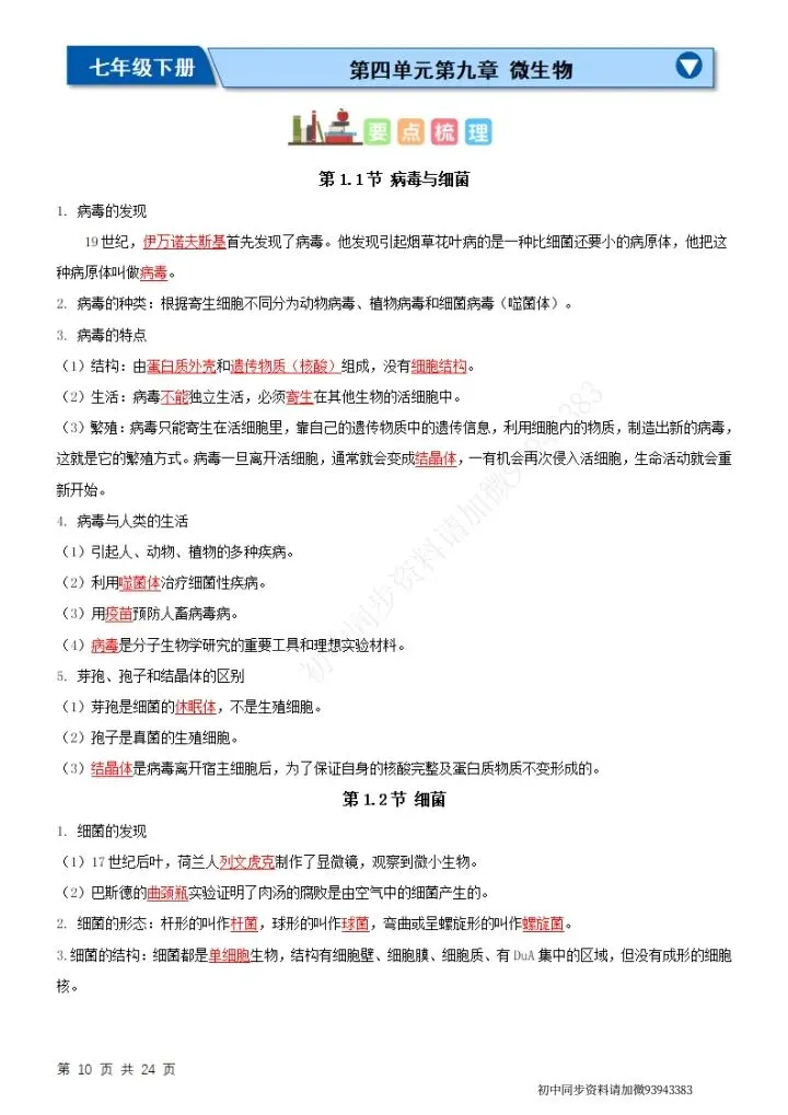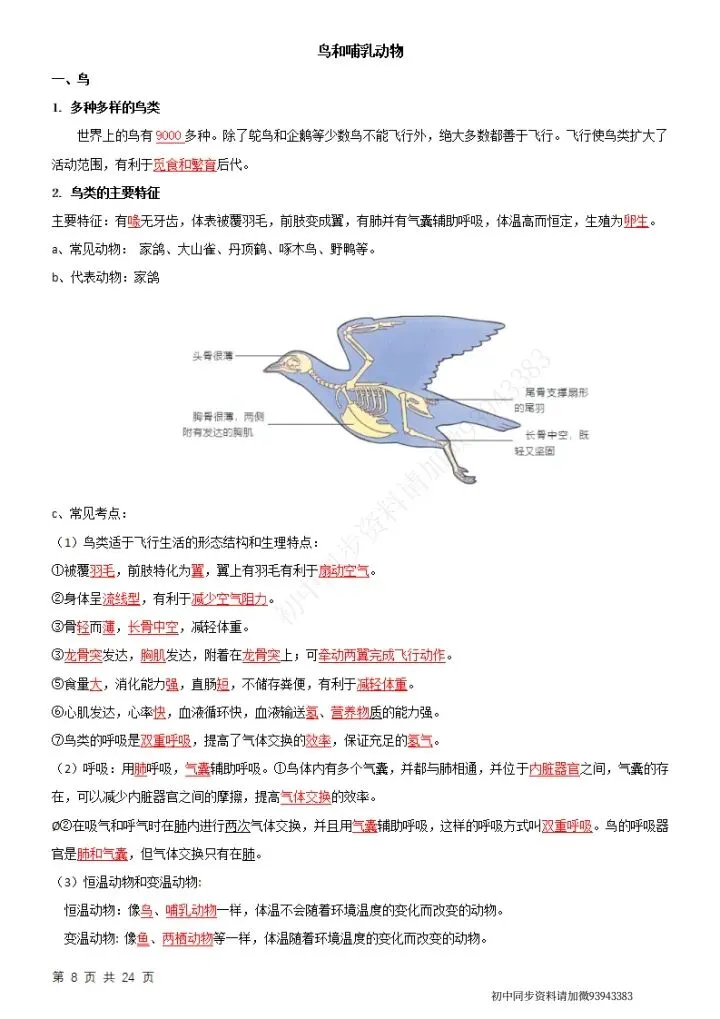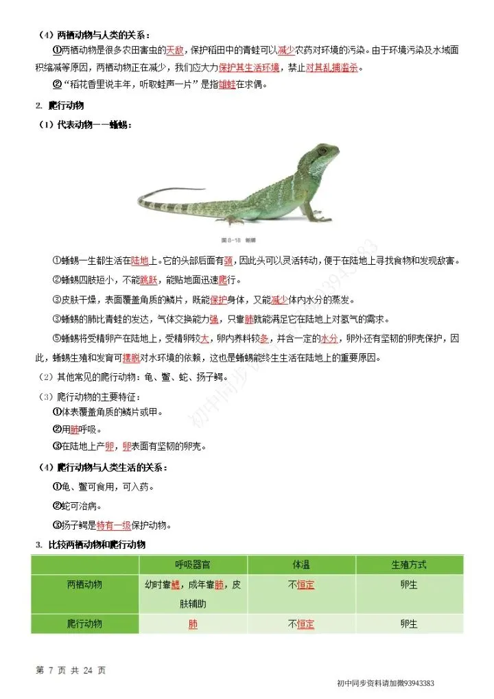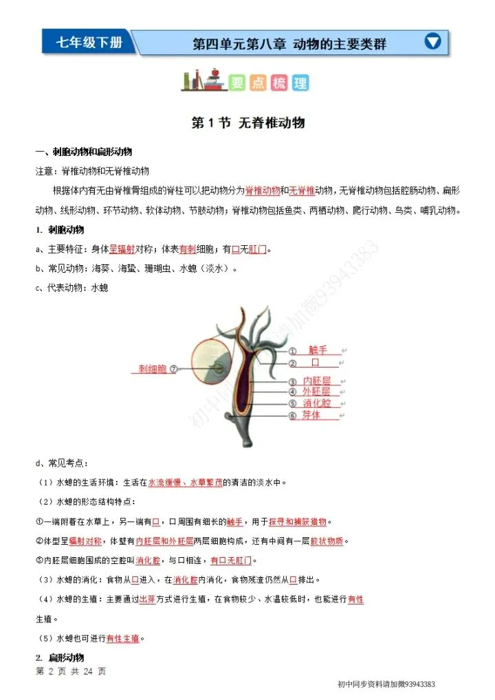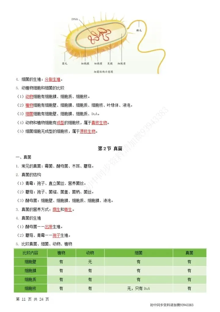 七下生物(苏科版)全册知识点总结,完整电子版可打印!