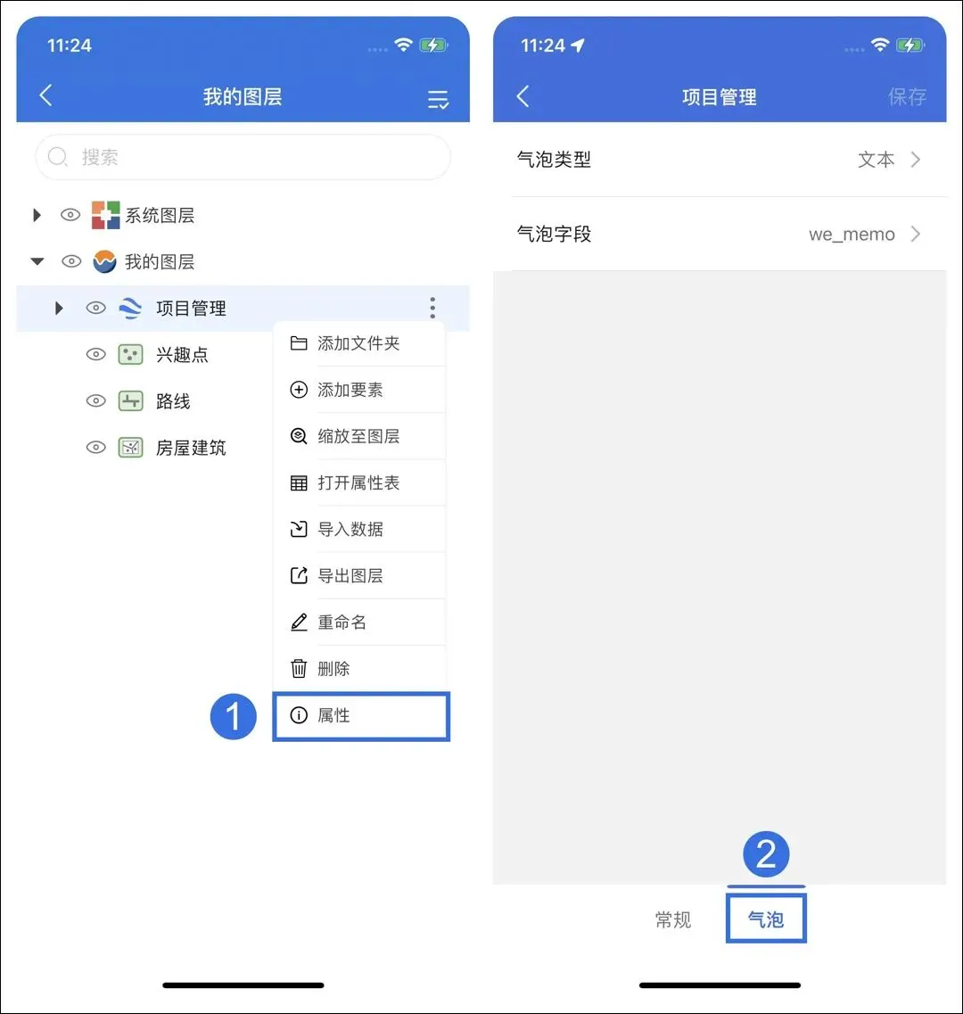 ② 气泡字段:下拉选项,可选项(图层所有属性字段)