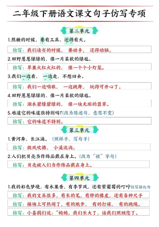 26春二年级下册语文【必考仿写句子】读背版,电子版可打印