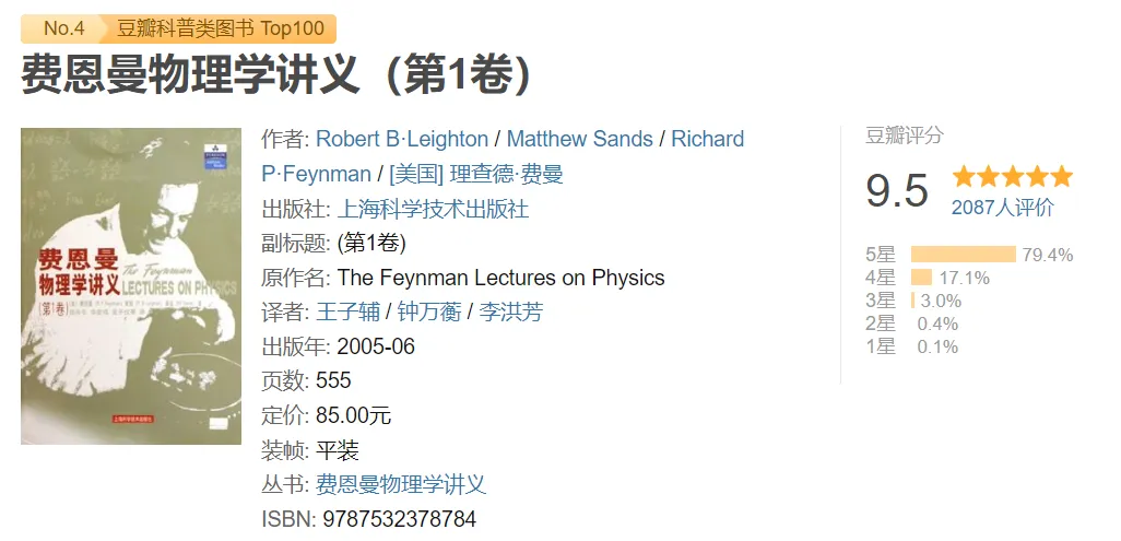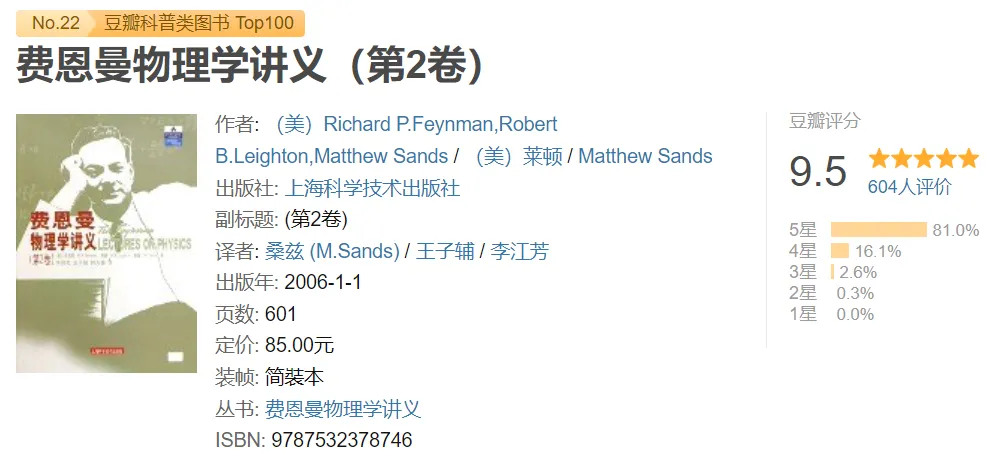《费恩曼物理学讲义》pdf+epub+mobi+azw3电子书免费下载 《费恩曼物理学讲义》电子版下载链接,点击文章末尾左下方“阅读原文”自动跳转。 代找电子书加微:350775395,加微备注领取电子资料可免费领取20T电子资料合集(古籍/电子书/小说/游戏/软件工具/电影/电视剧/动漫/PPT素材/教辅资料/烹饪教程/各类学习文档等电子资源)。 特别提醒:电子资料仅供个人学习使用,链接随时失效,请及时保存到个人网盘!