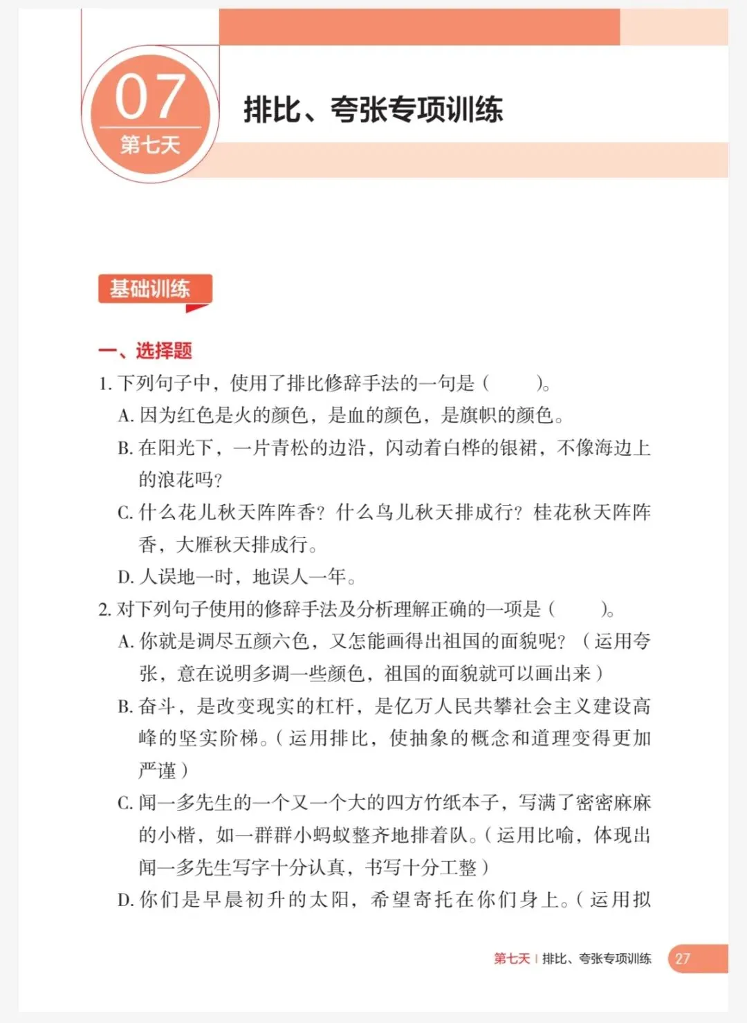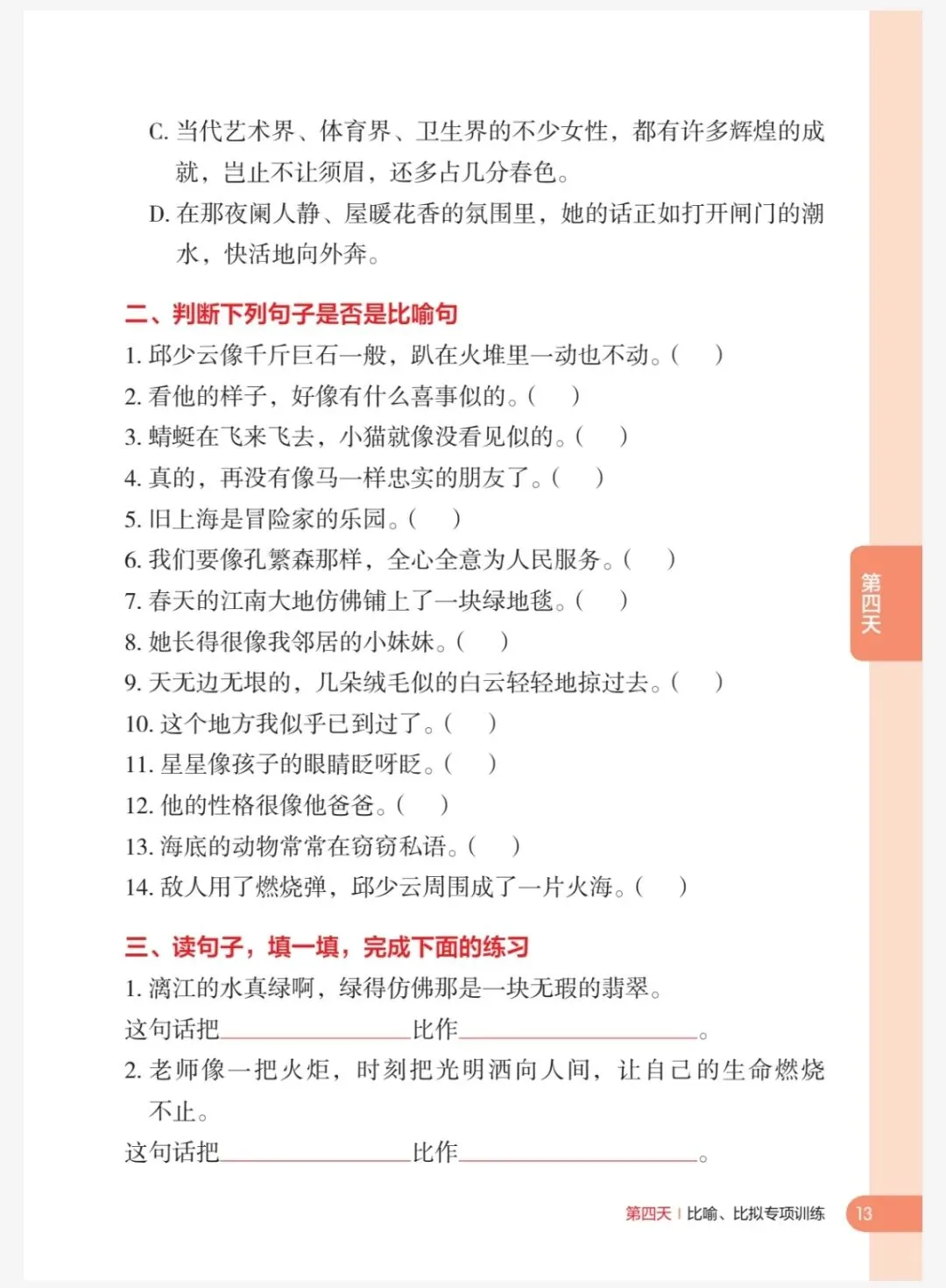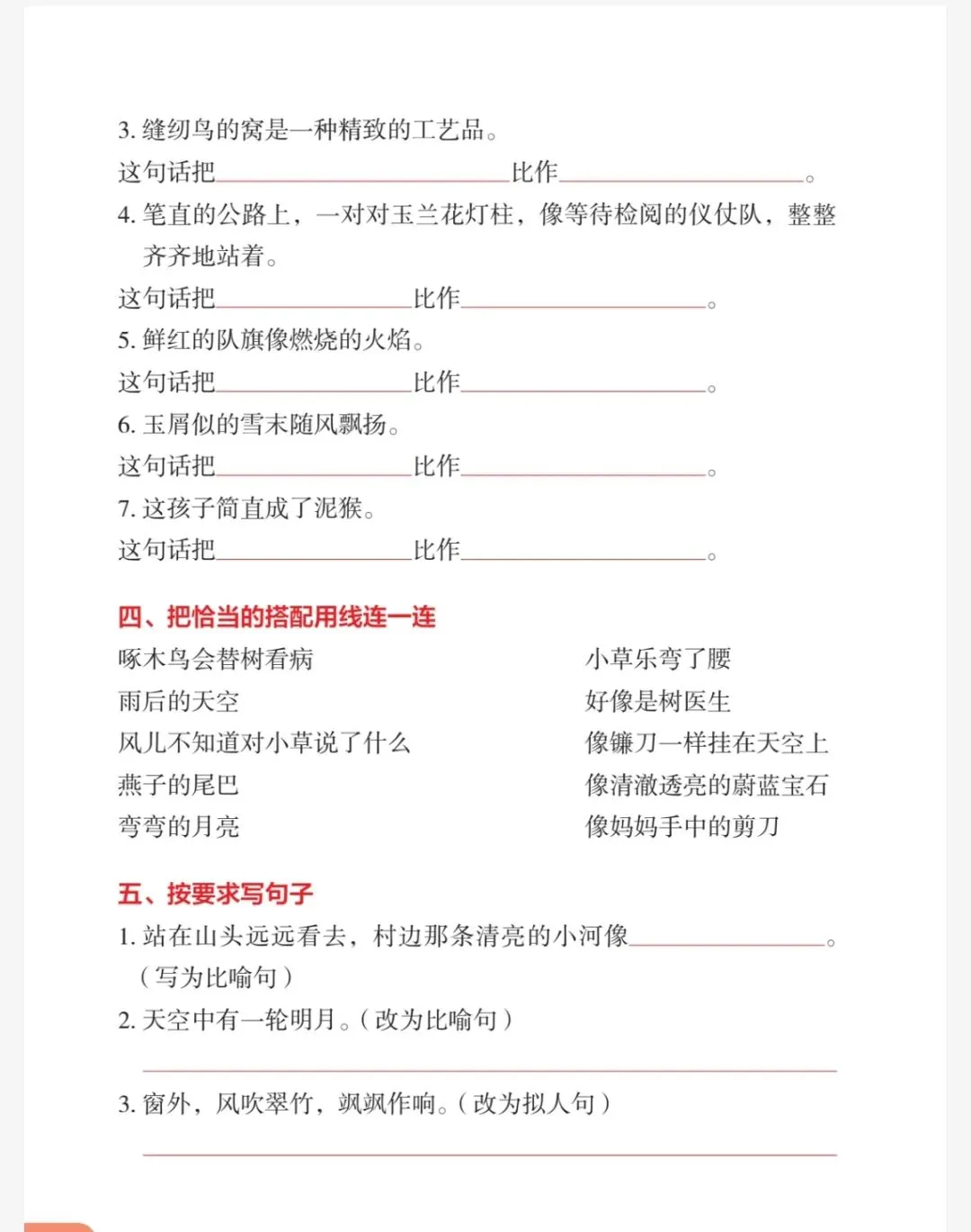 小学语文考点专项练习:修辞手法专项训练 电子版可打印下载