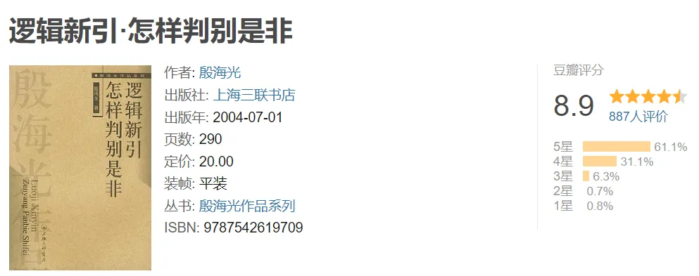 《逻辑新引:怎样判别是非》pdf+epub+mobi+azw3电子书免费下载 《逻辑新引:怎样判别是非》电子版下载链接,点击文章末尾左下方“阅读原文”自动跳转。 代找电子书加微:350775395,加微备注领取电子资料可免费领取20T电子资料合集(古籍/电子书/小说/游戏/软件工具/电影/电视剧/动漫/PPT素材/教辅资料/烹饪教程/各类学习文档等电子资源)。 特别提醒:电子资料仅供个人学习使用,链接随时失效,请及时保存到个人网盘!