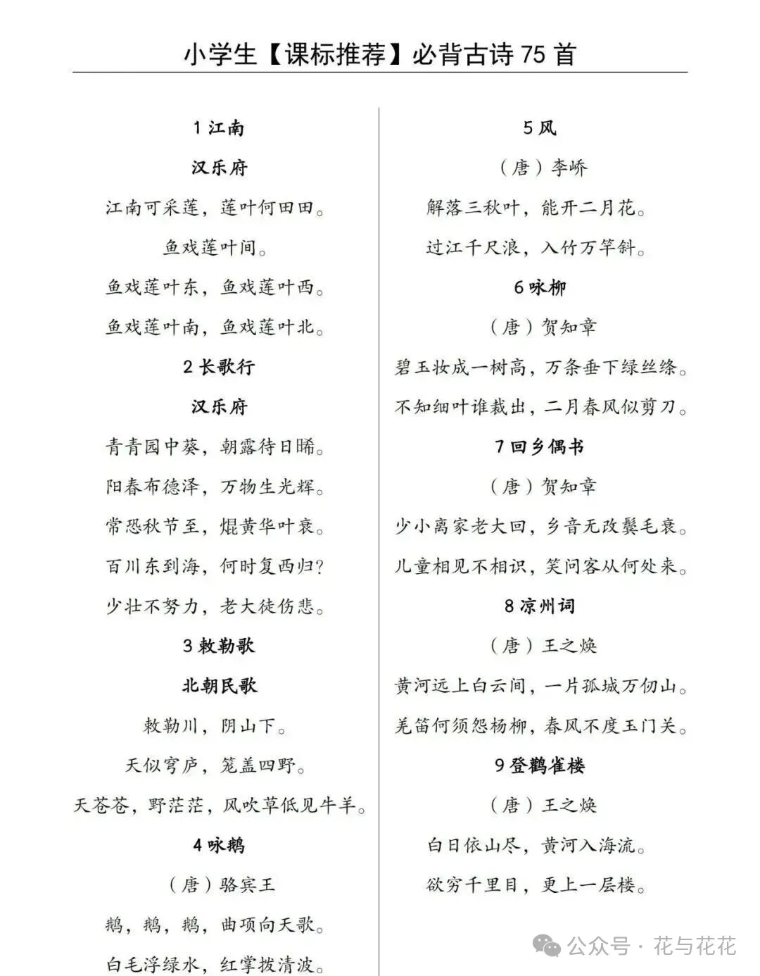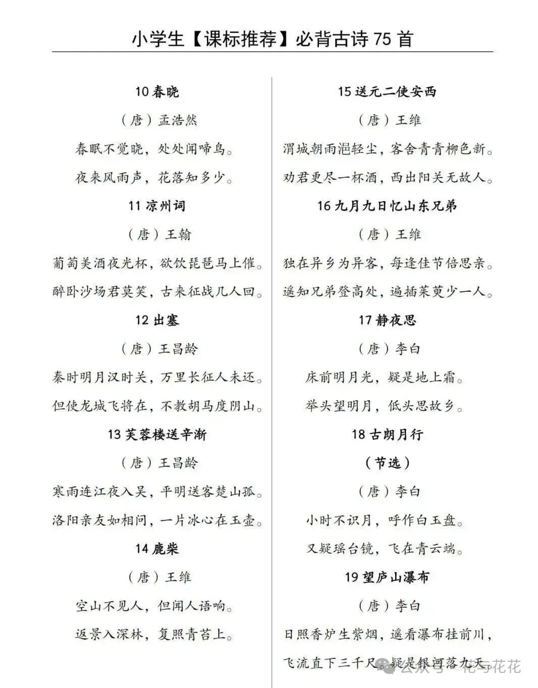 「小学1-6年级必背古诗卡电子版」