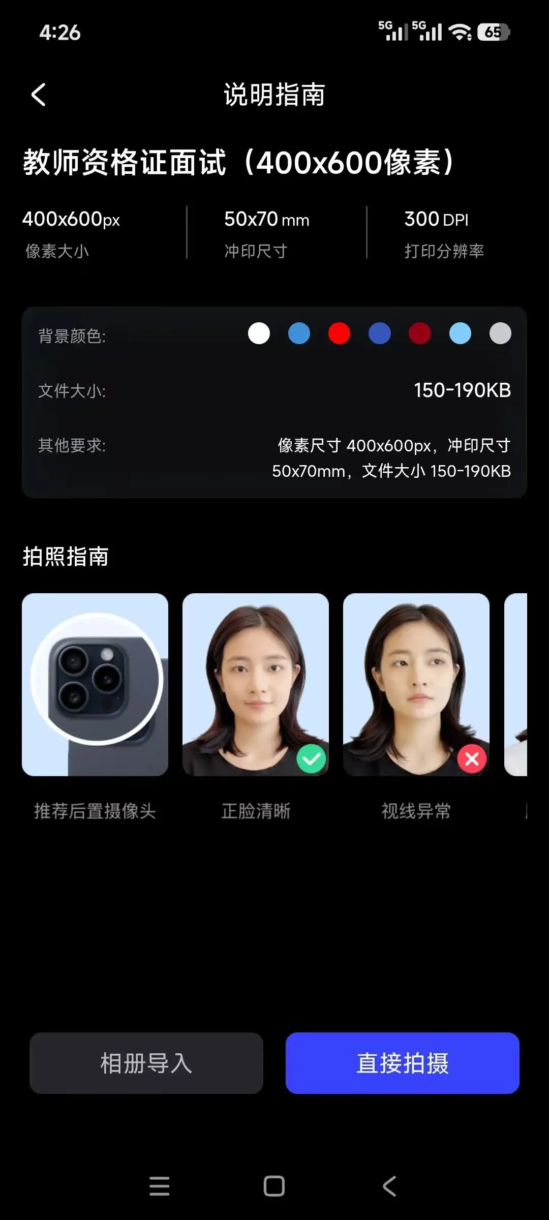 APP内置了上百种官方指定的证件照规格: