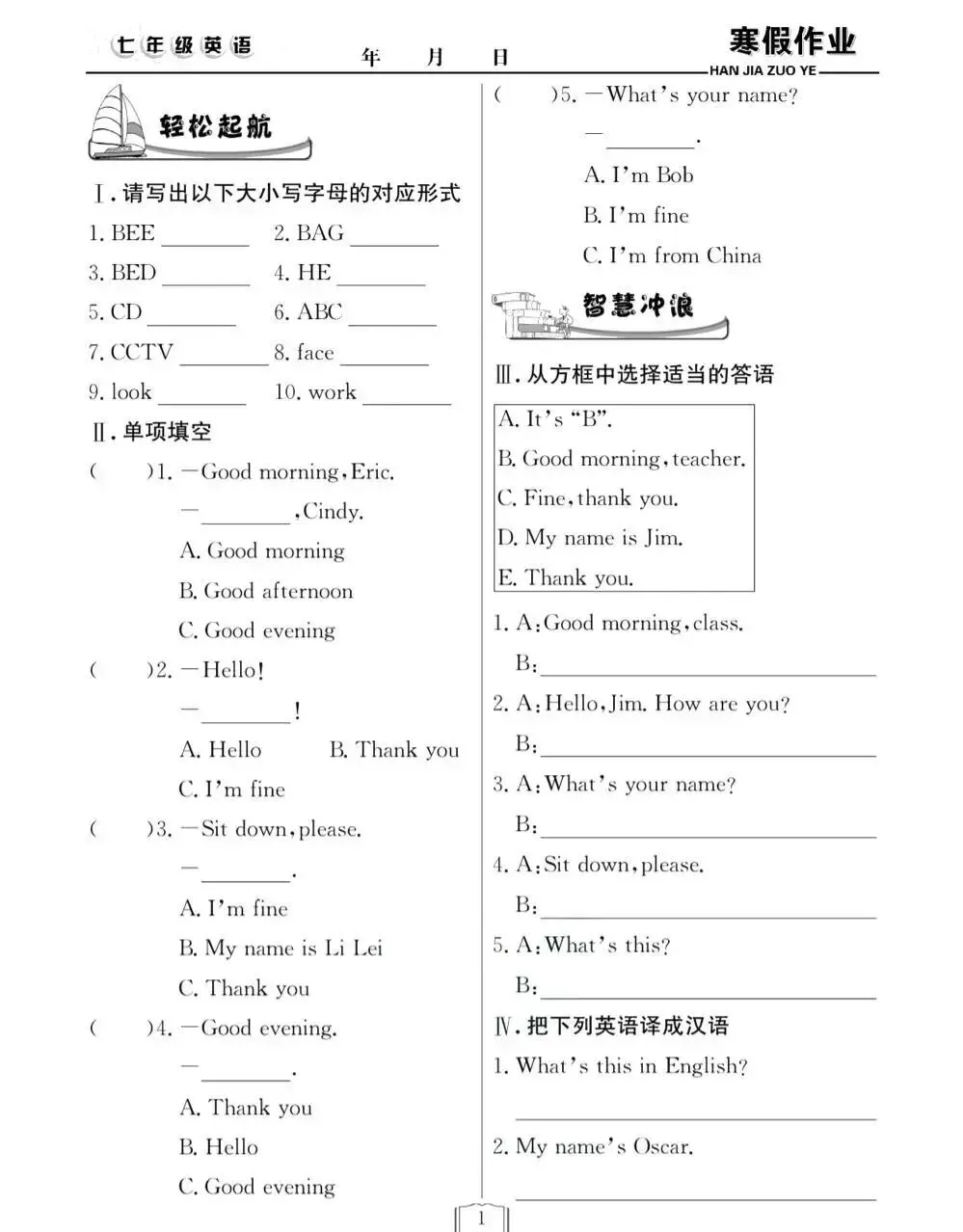 寒假作业·快乐假期七年级英语人教版 | 可打印