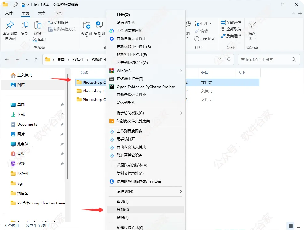 将解压后的插件文件复制到Photoshop的Plug-ins目录下