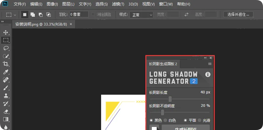 根据需要设置阴影长度、透明度、颜色、方向等参数,创建长投影效果