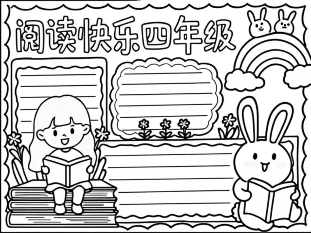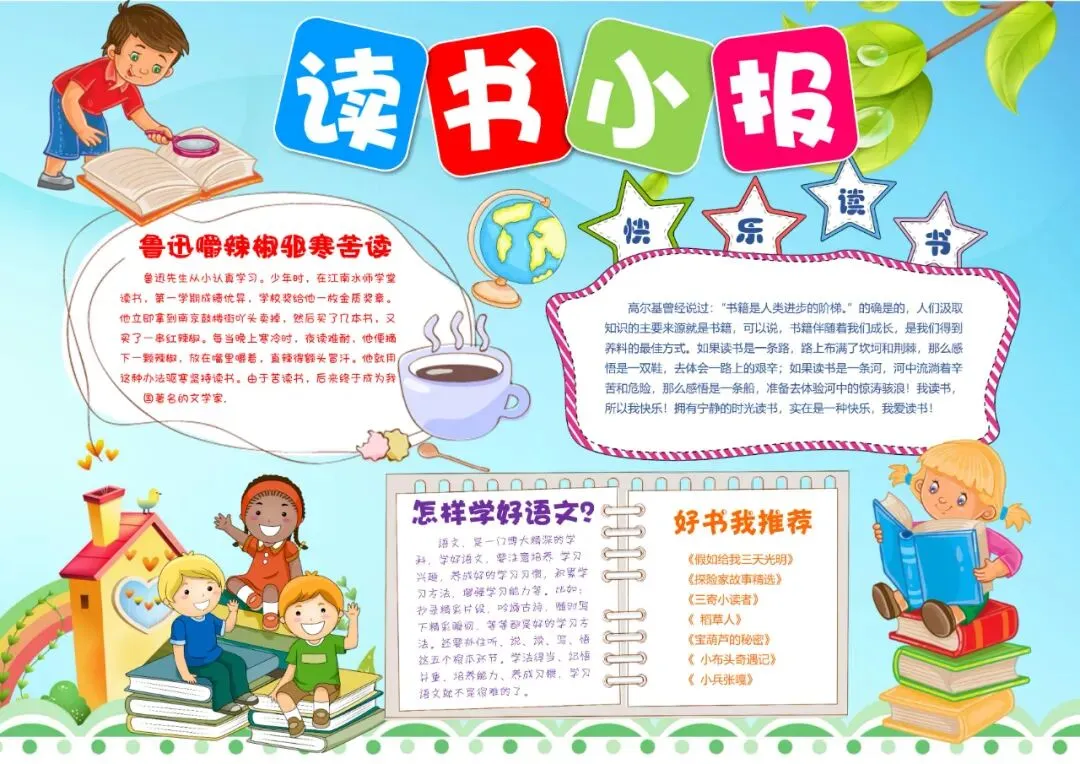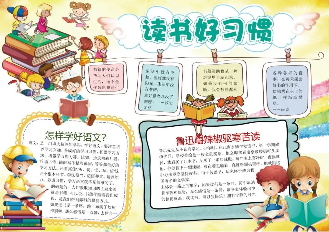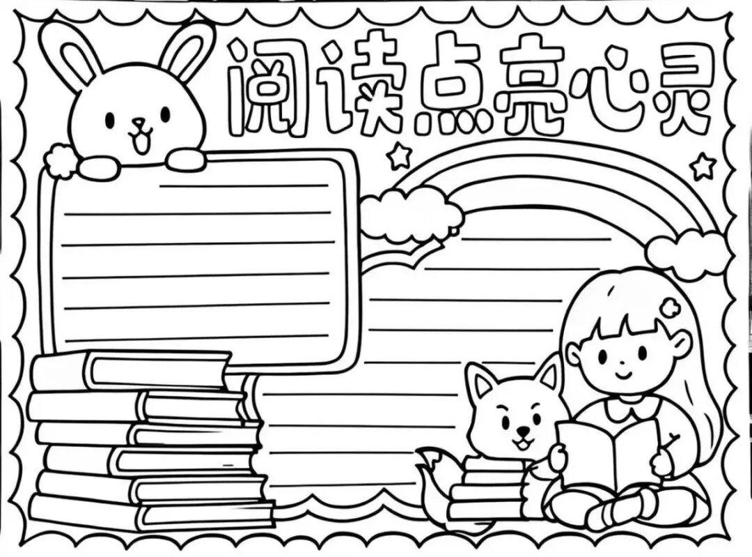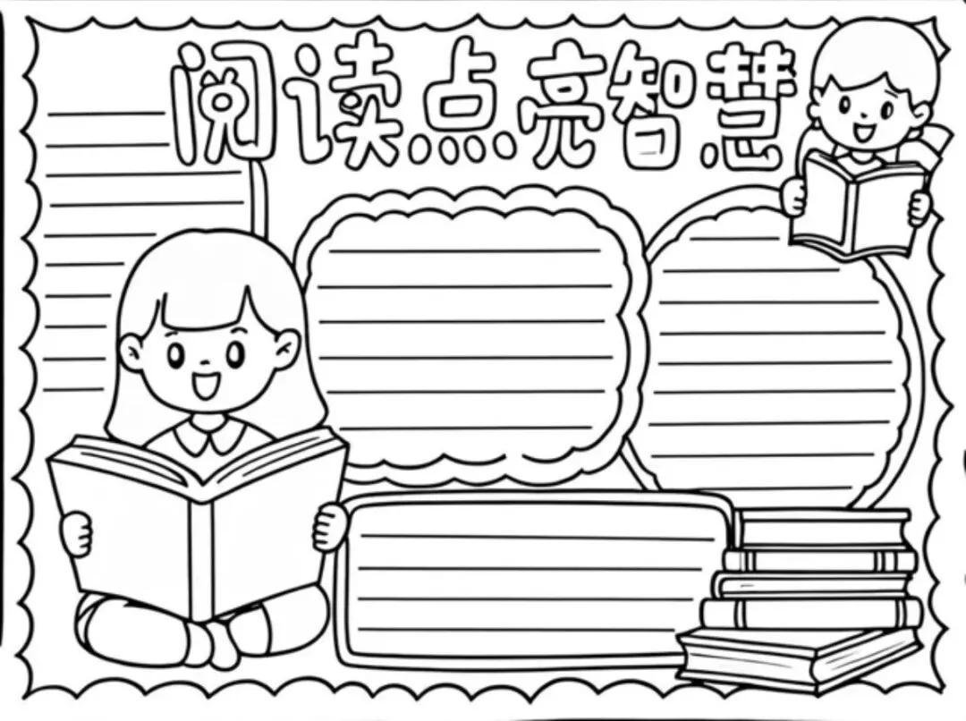 语文读书小报、阅读手抄报精选模板+线稿 可下载打印