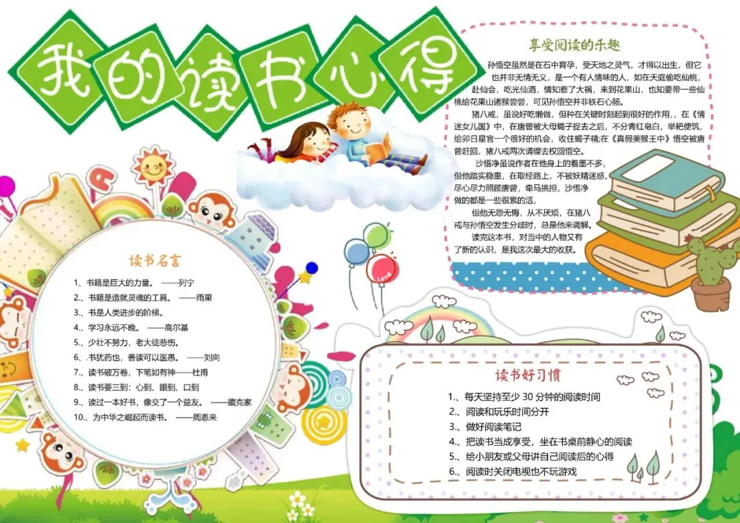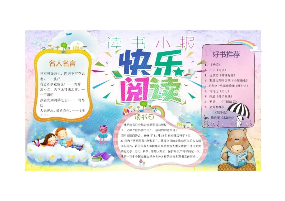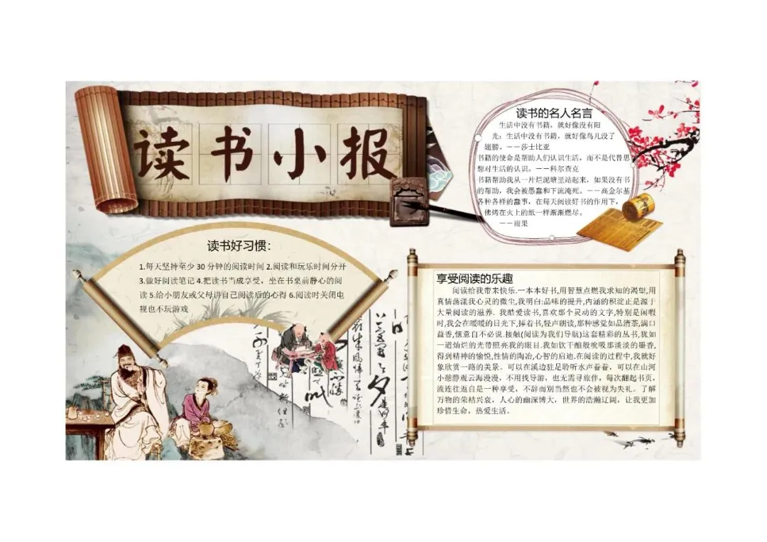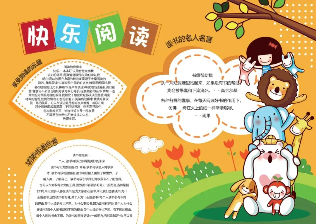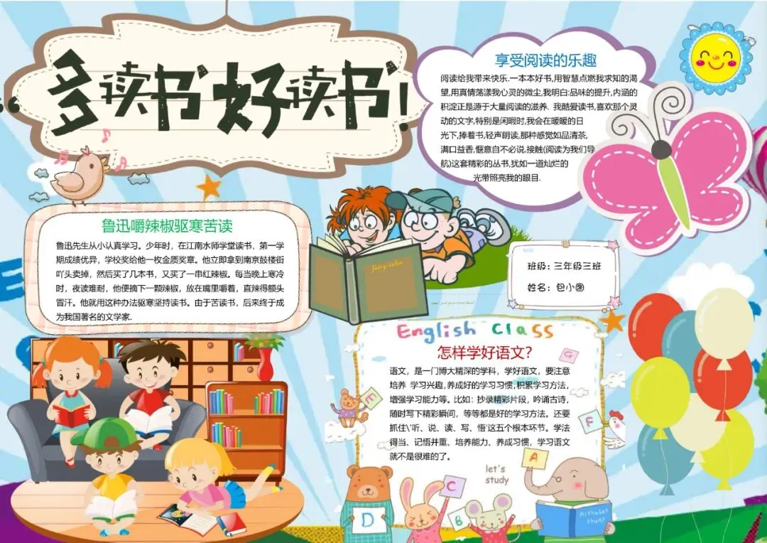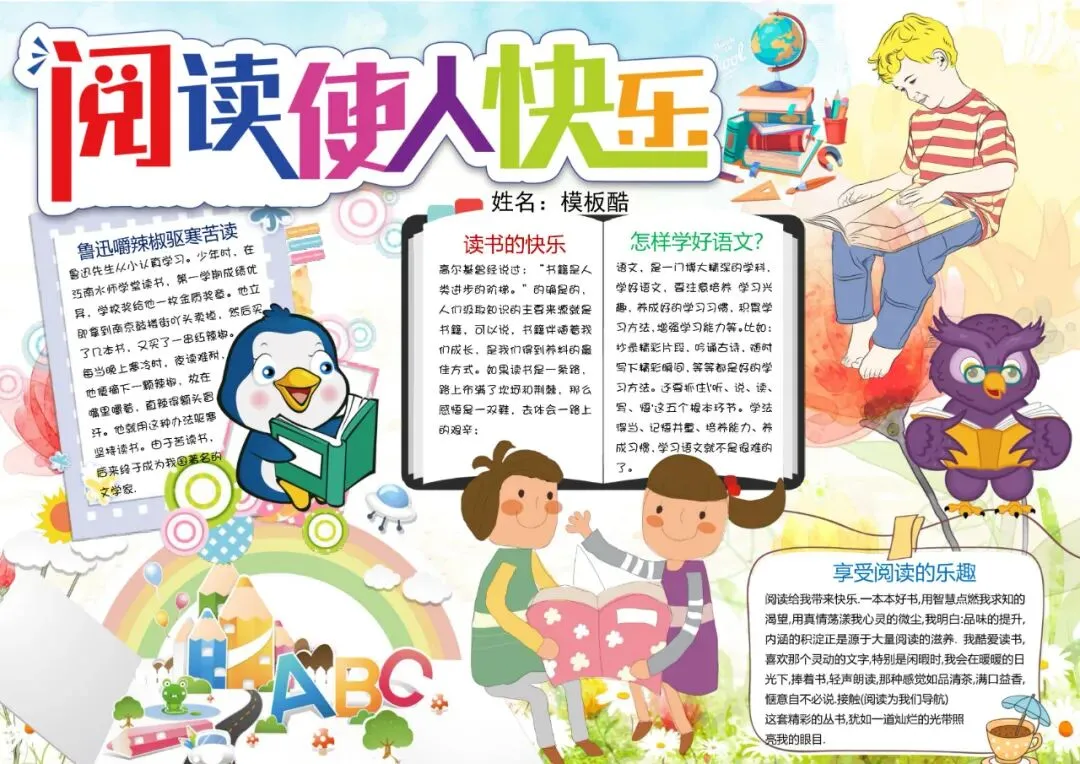 语文读书小报、阅读手抄报精选模板+线稿 可下载打印