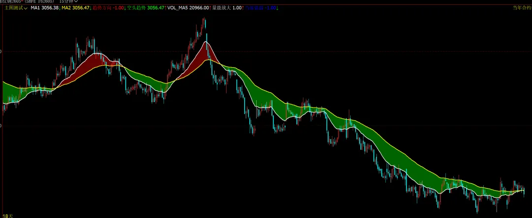 趋势方向:IF(MA1>MA2,1,-1),COLORRED,NODRAW;