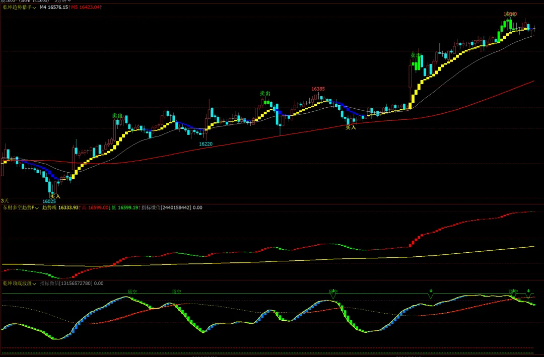 2、乾坤趋势猎手主图,东财多空趋势幅图,乾坤顶底波段幅图