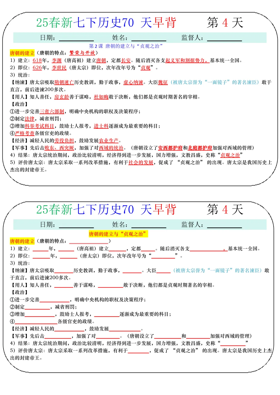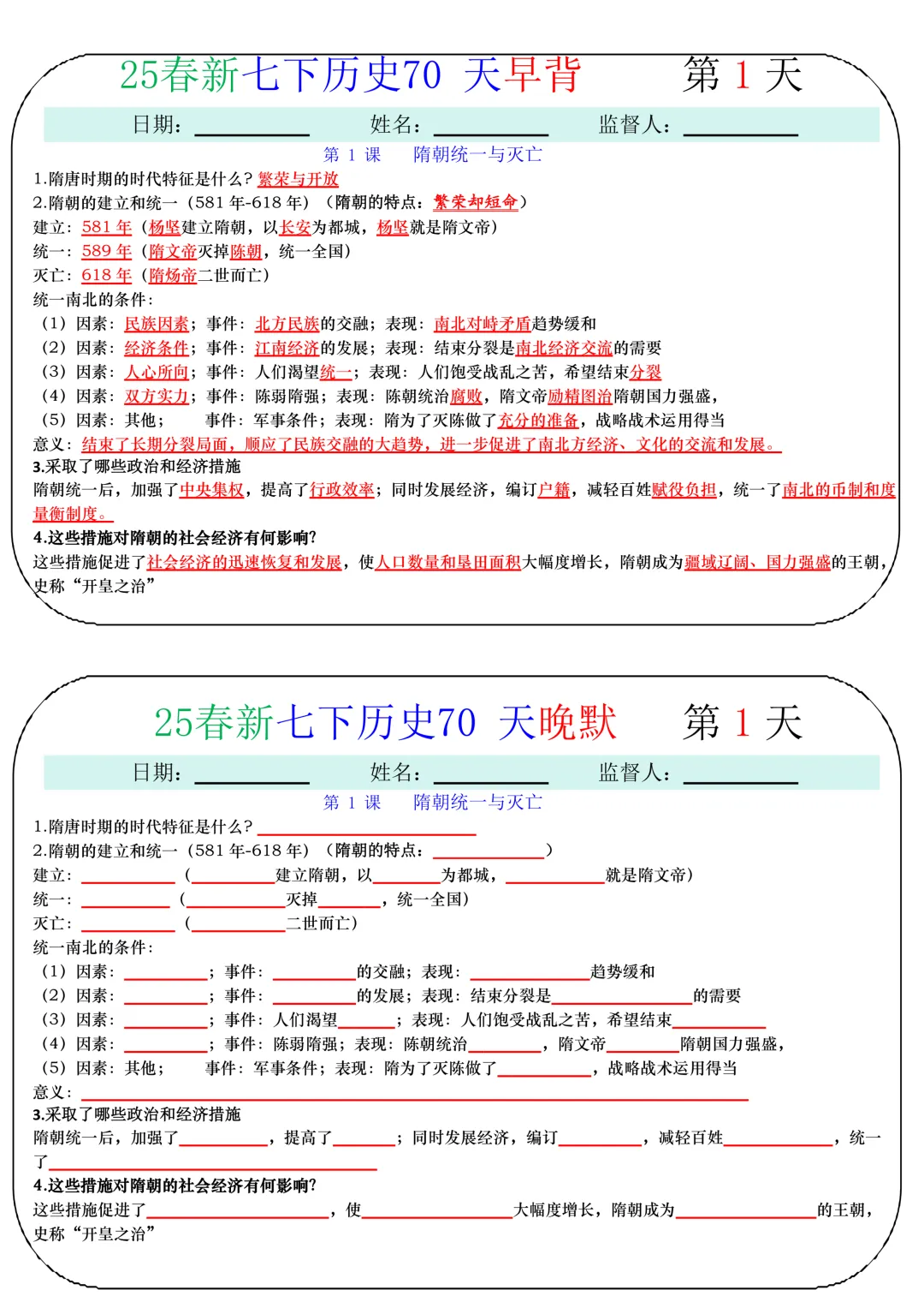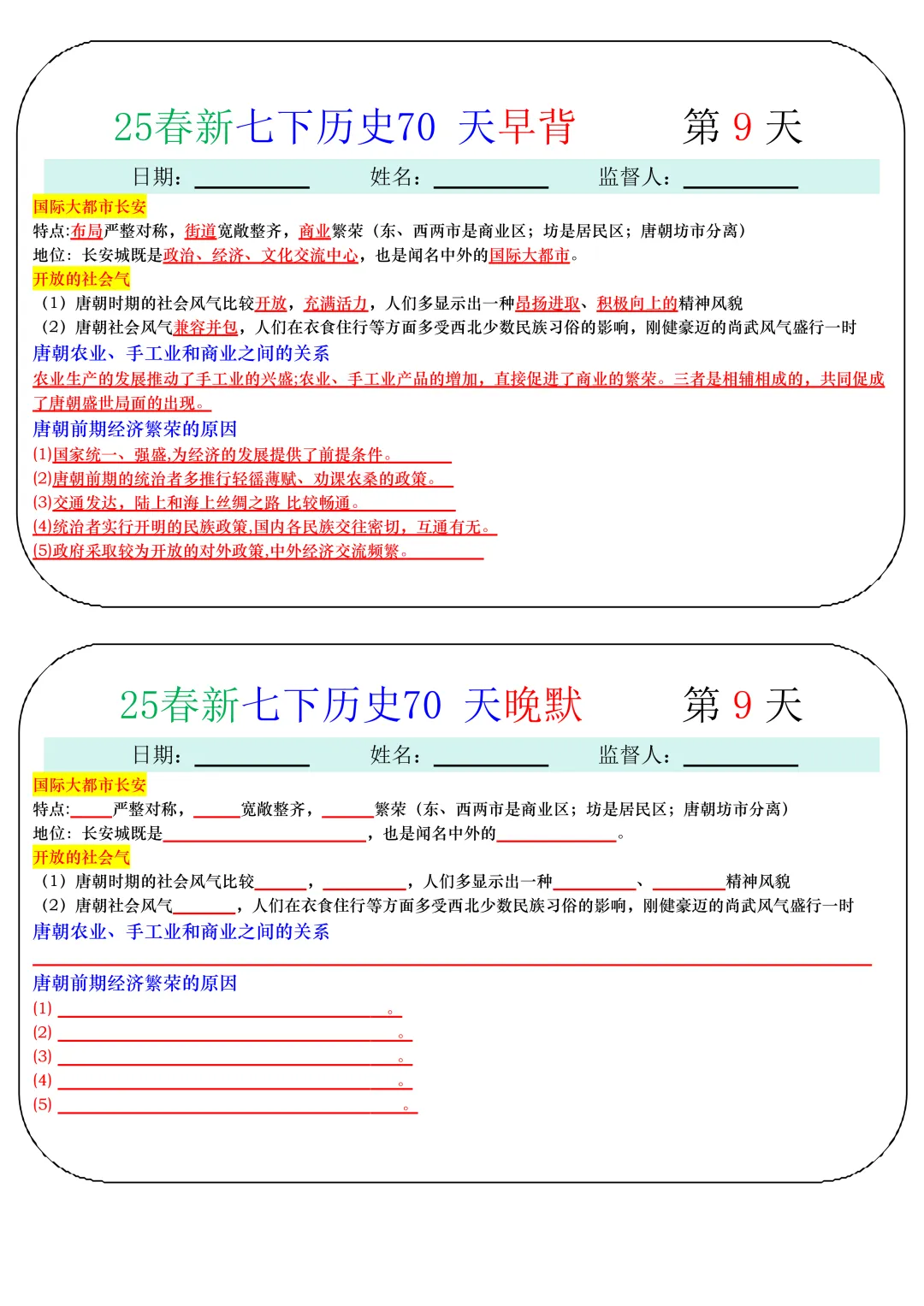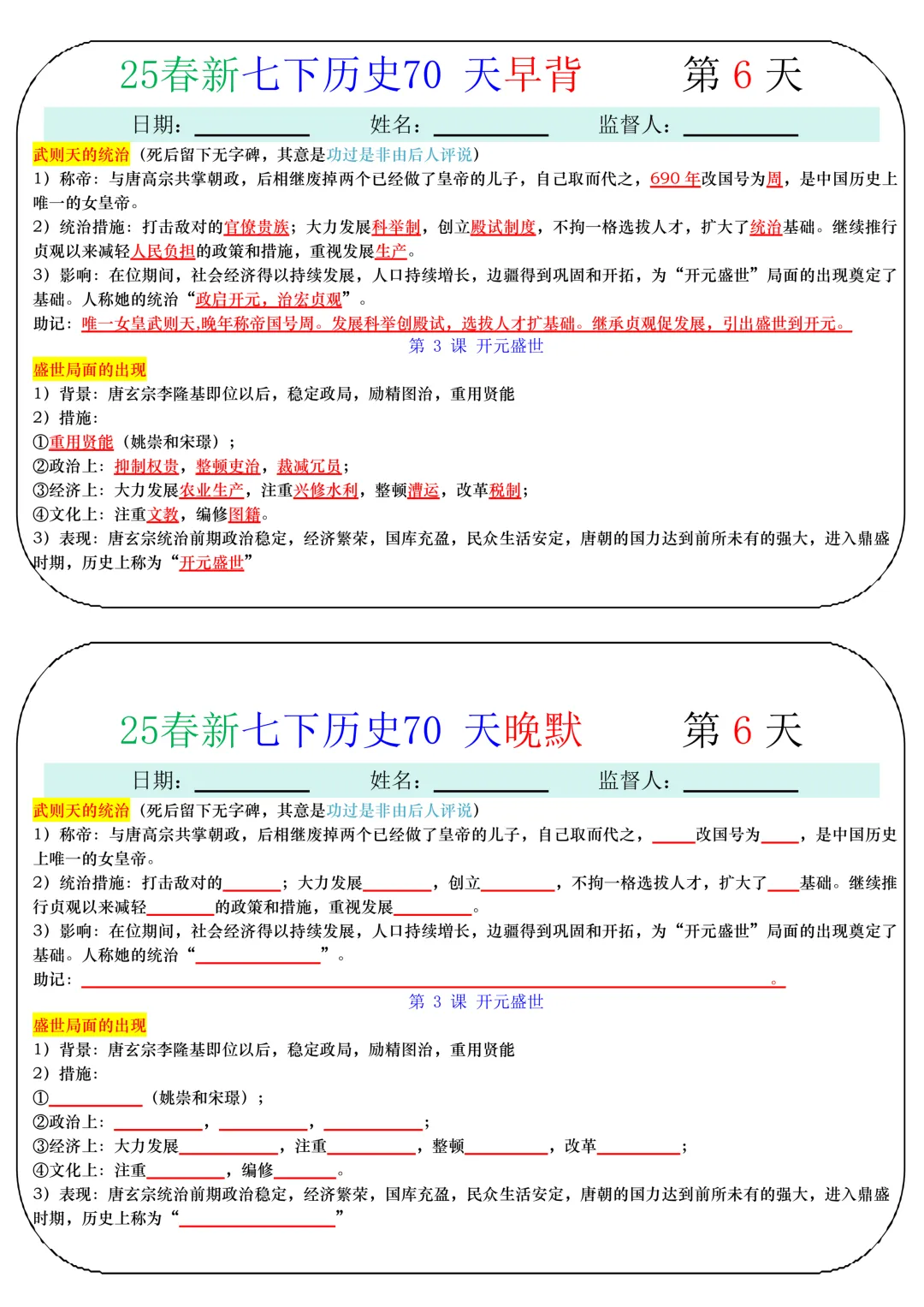 七下历史早背晚默小纸条(70 天规划)可打印!