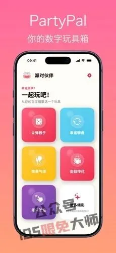 【PartyPal – 聚会工具箱】一款聚会游戏工具,内置指尖轮盘、击鼓传花、3D骰子、转盘抽签、惊喜气球于一体。