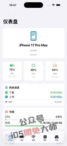 【DeviceScope · 设备监控】一款专业的iOS设备监控工具,可帮助你实时掌握iPhone的系统状态、硬件信息以及移动网络流量使用情况。软件本体限免,去广的内购不限免!