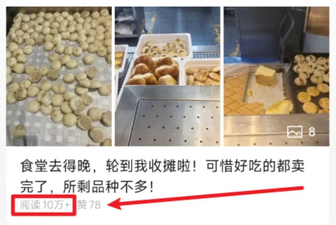 这个食堂肉包子的帖子,就是几张照片加一段话,爆了10W+阅读,收益是在500左右