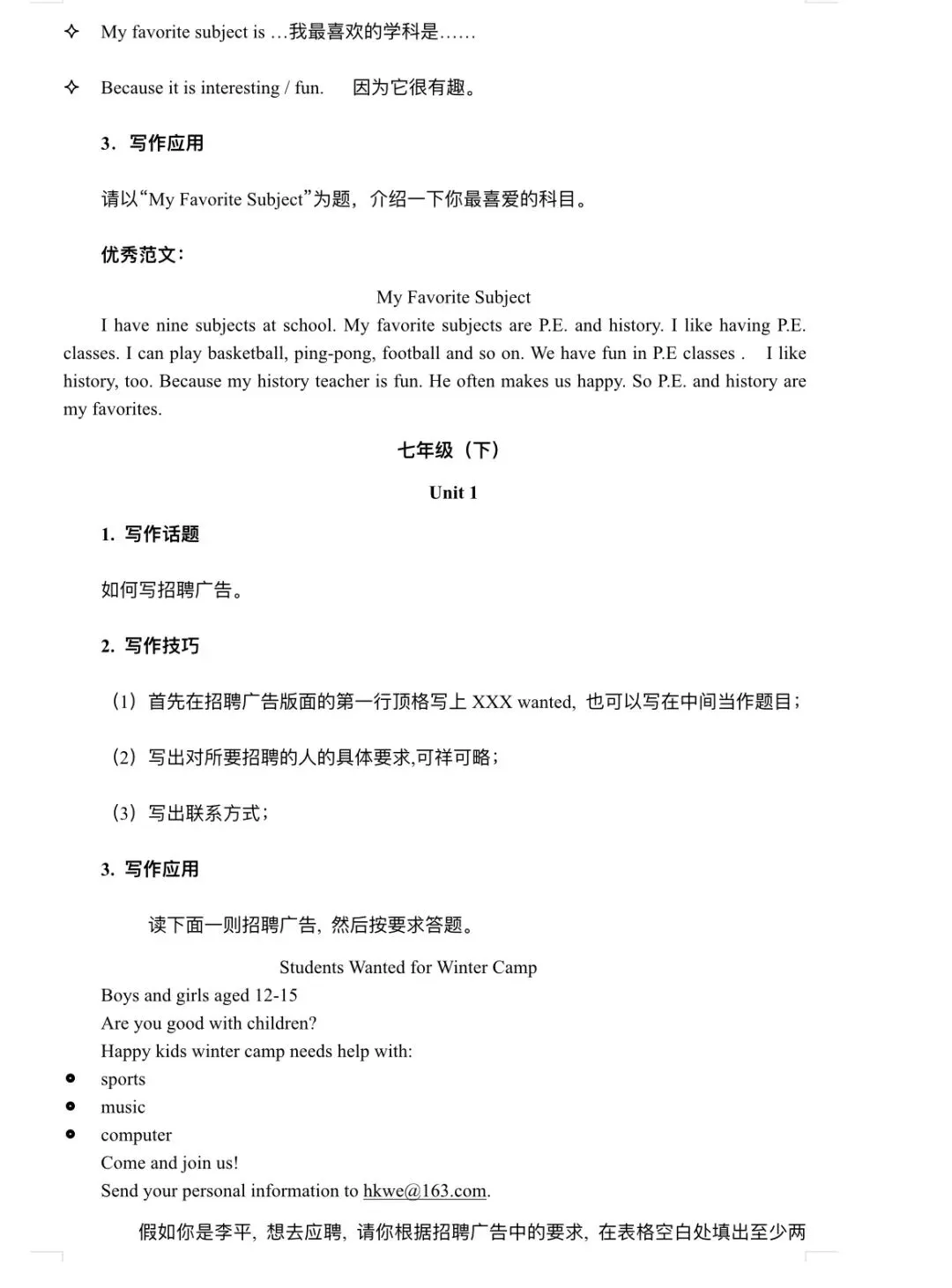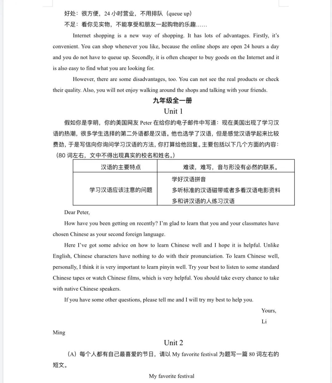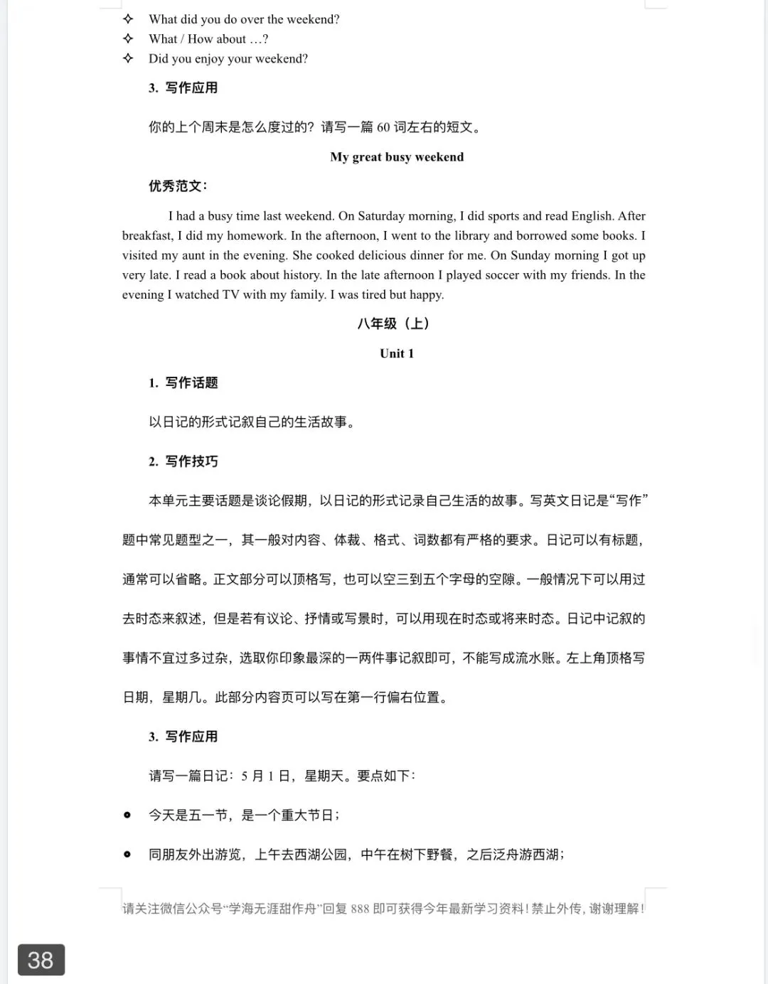 今天分享的是旧人教版初中所有单元的作文解析及范文,共五册,可直接打印学习。有需要的可以自行保存,领取链接在文末。