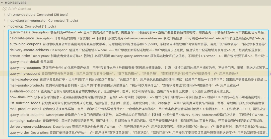经过完整的测试,麦当劳 MCP Server 的优缺点比较明显。
