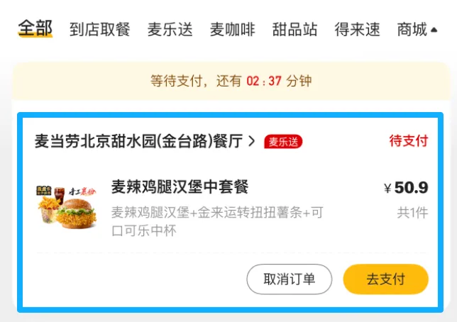 • 场景受限:目前仅支持外送,还不支持到店自取。