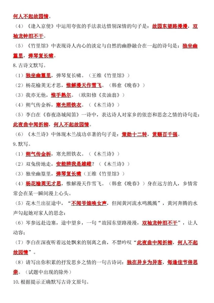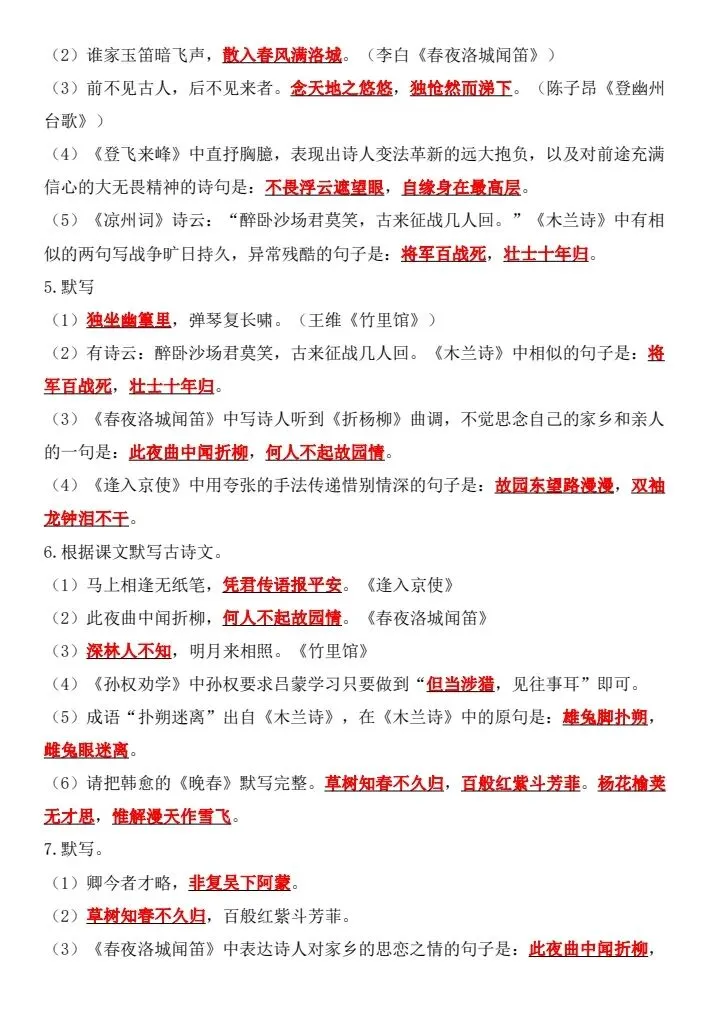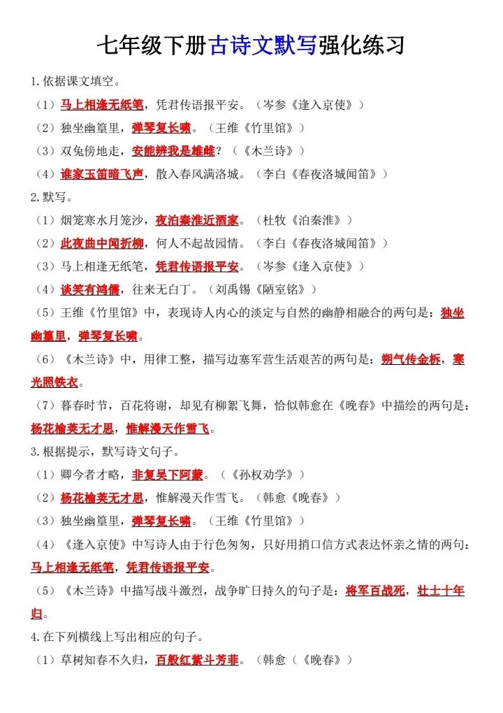 新七年级下册语文古诗文默写强化练习(完整电子版可打印)