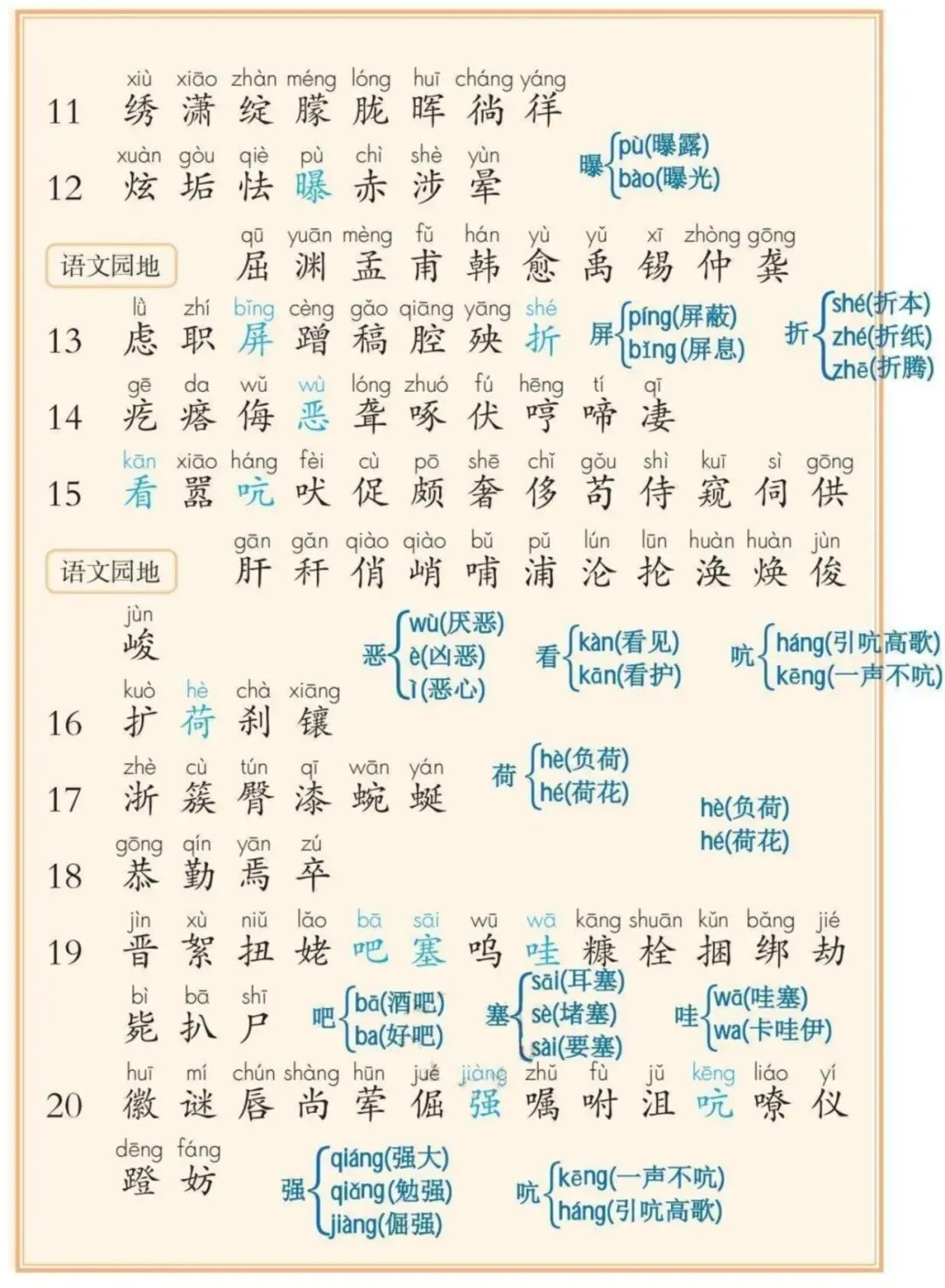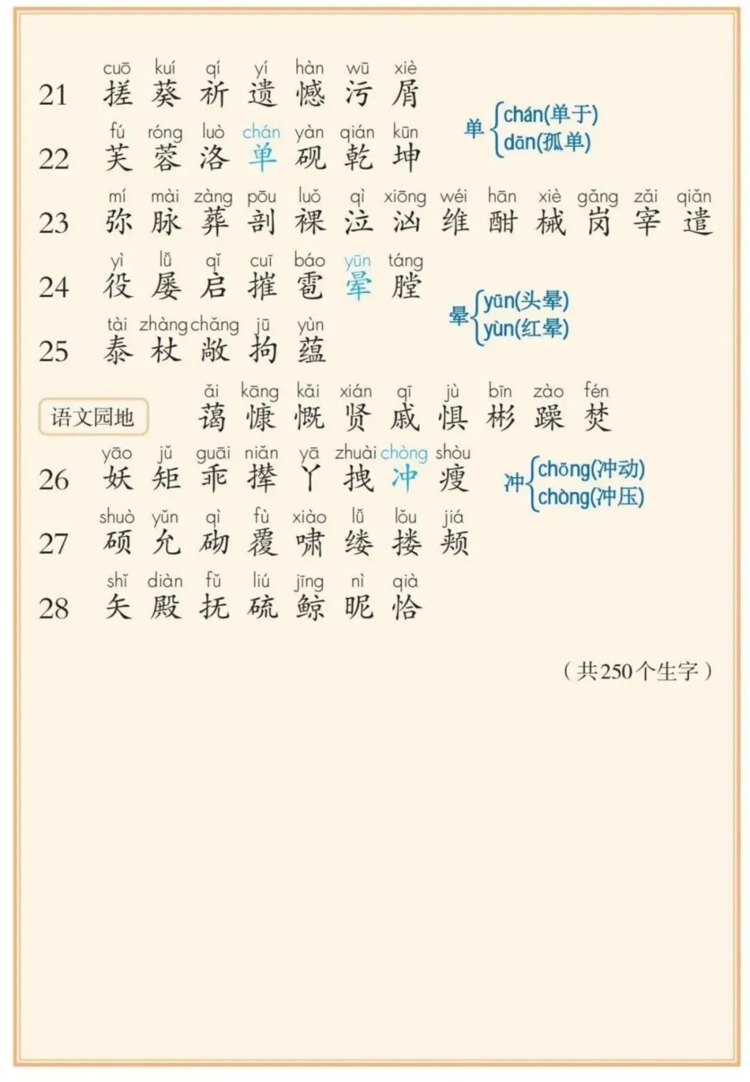 2026春四年级下册语文课后三表注音版《识字表+写字表+词语表)