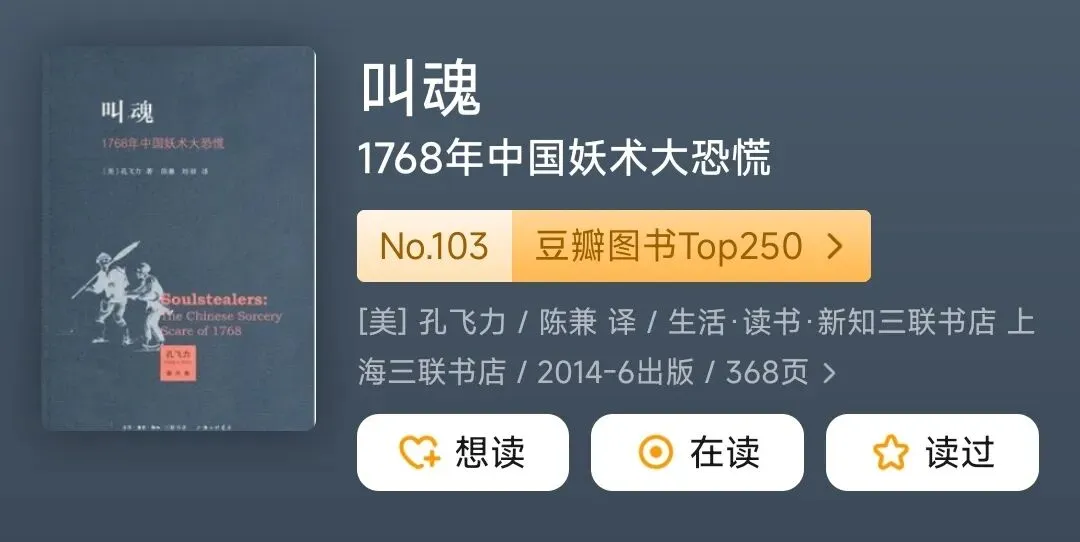 |叫魂:1768年中国妖术大恐慌(孔飞力)|