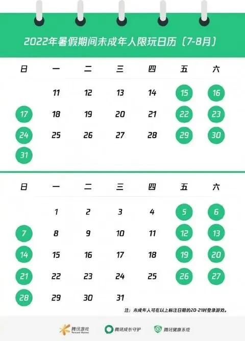 (快科技)针对“ 暑假每天都能打一小时游戏 ”的传闻,腾讯游戏进行辟谣,并发布了 2022 暑假期间未成年人限玩日历。