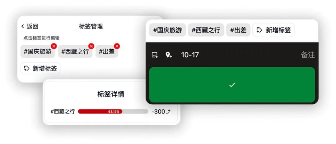 Cent 还支持标签功能,通过自定义标签,可以更好地记录「一系列」的支出或者收入。你一样可以自定义 tag 的名称和排序,方便记账时快速选择。