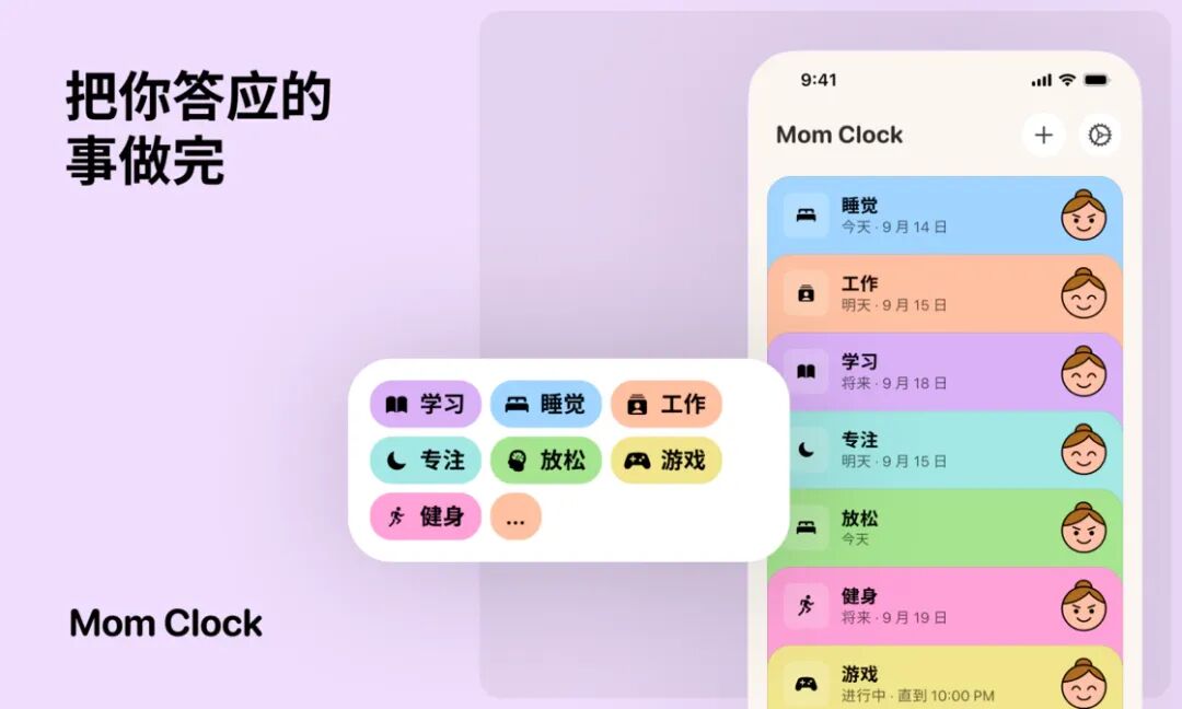 设定规则,然后 Mom Clock 督促你做完
