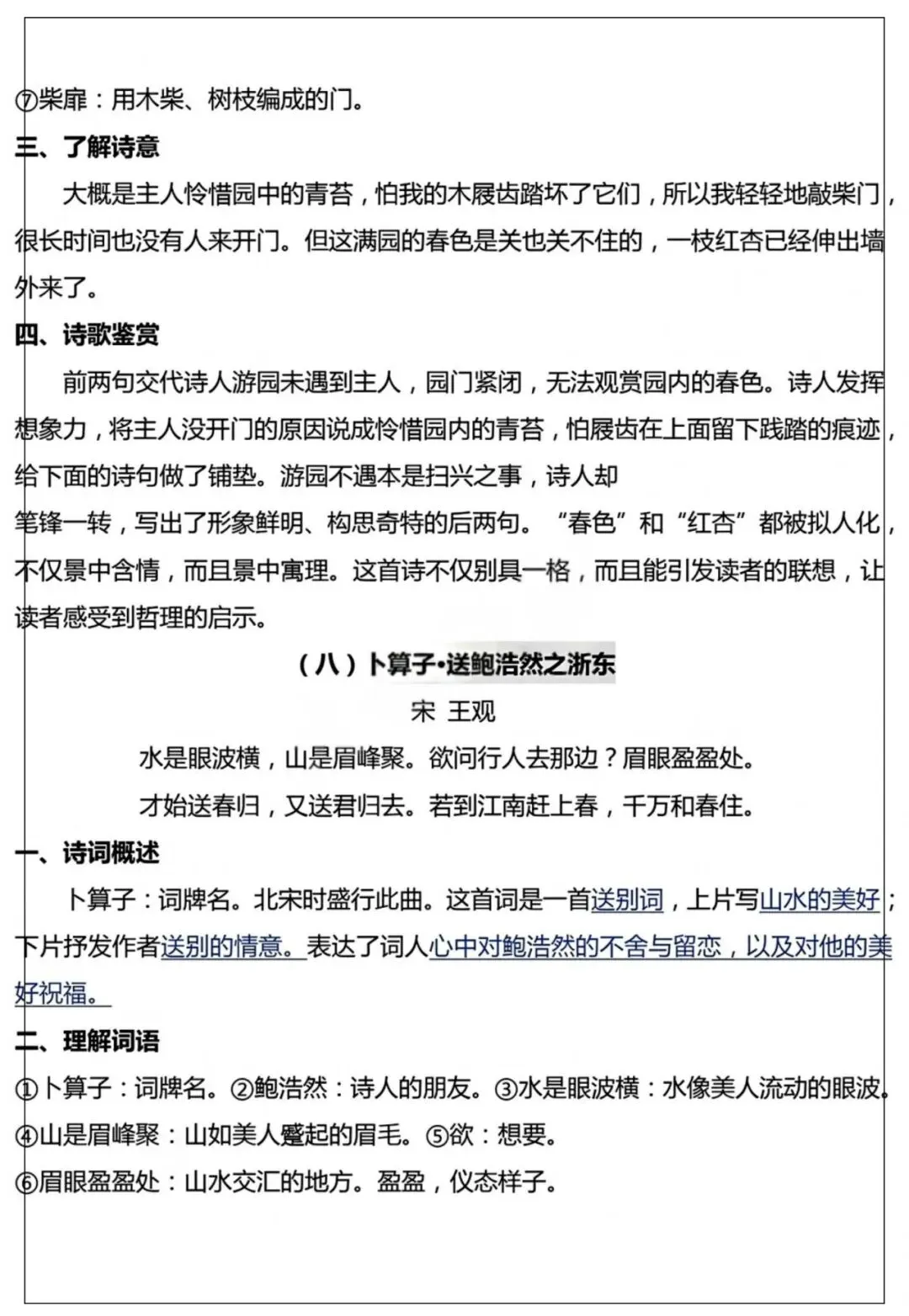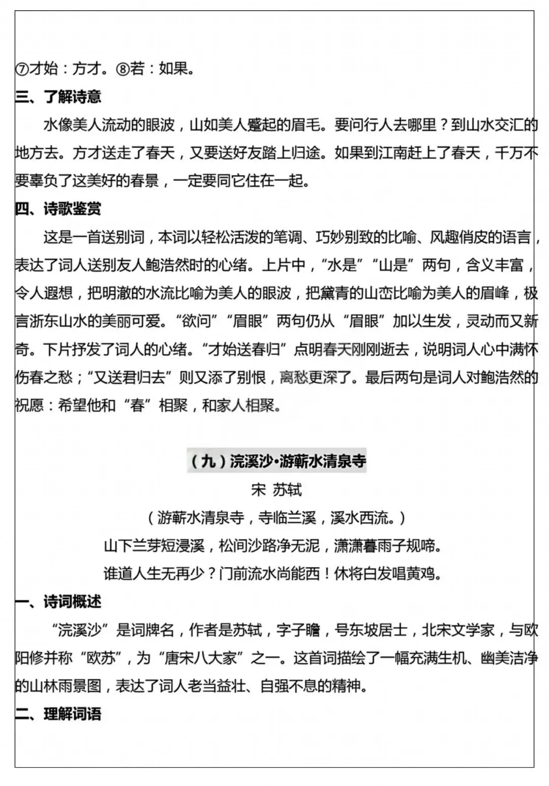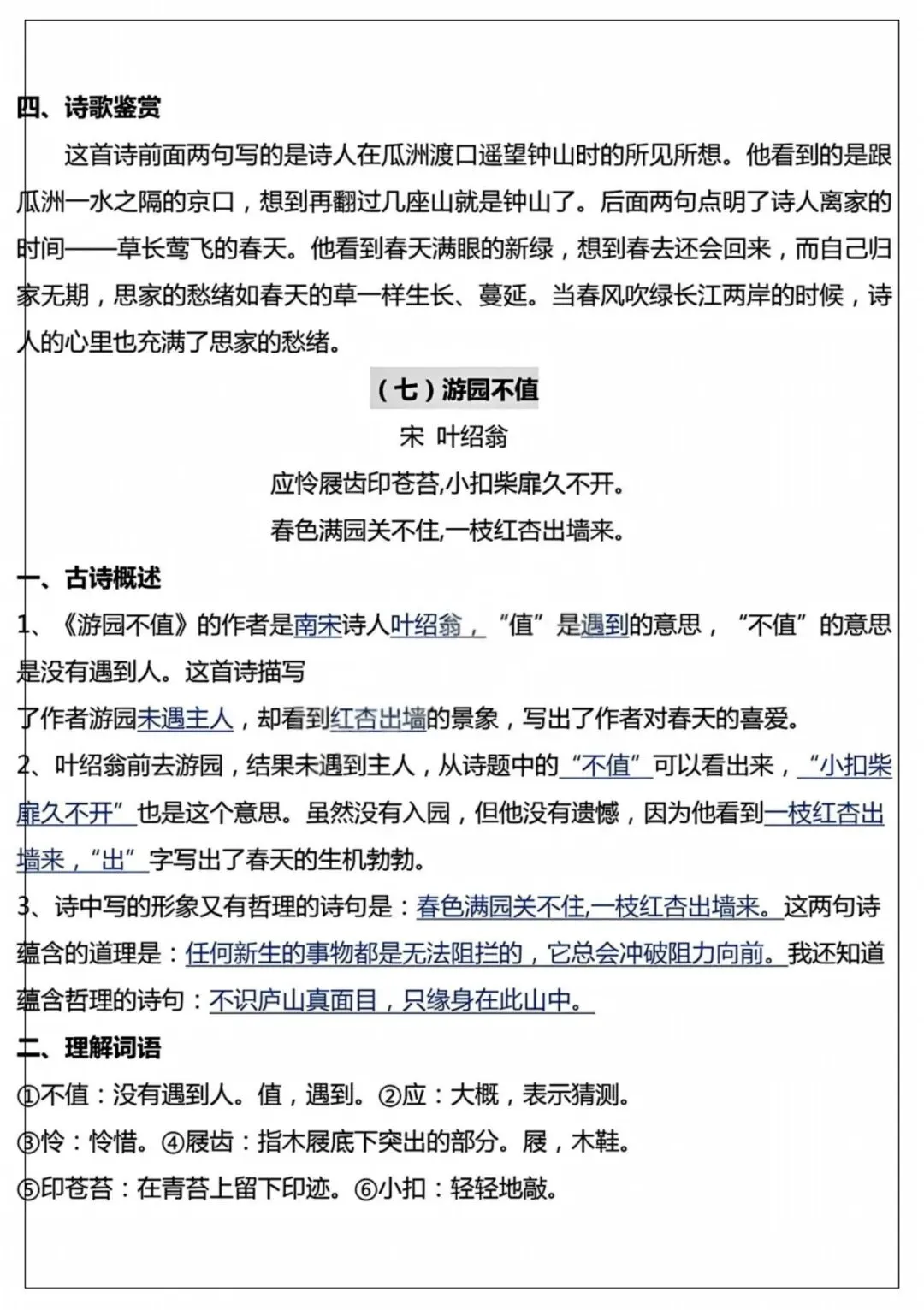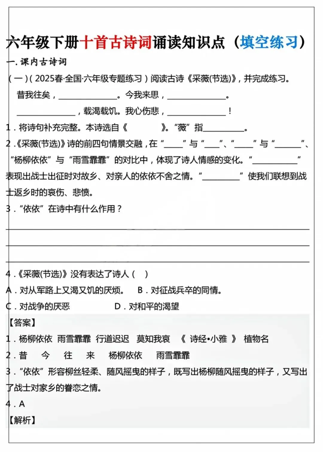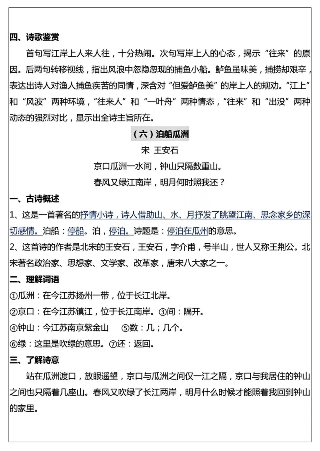 26年春季最新版六年级下册语文【十首古诗词知识点】词语解释、古诗翻译、中心思想、可打印