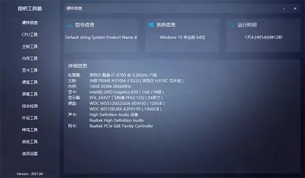 支持皮肤自定义、动态图标更换,工具管理器允许用户自由增删工具(如移除不常用的内存测试工具)。