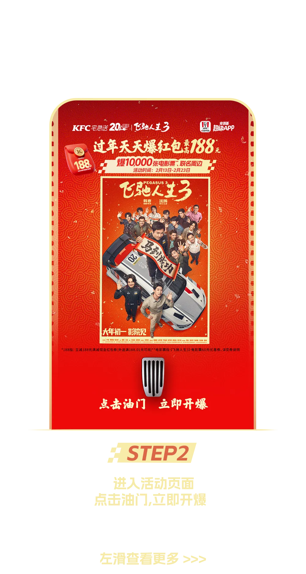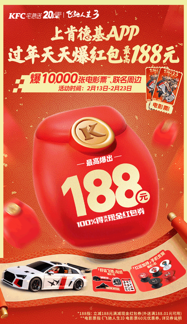(4)肯德基宅急送×《飞驰人生3》新春壁纸2张,共50000张;