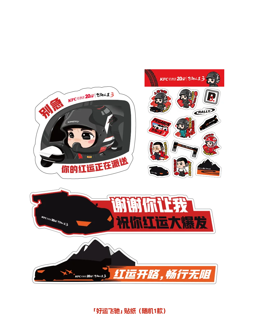 (2)肯德基宅急送×《飞驰人生3》联名贴纸1张(共4款,随机发放),共8000张;