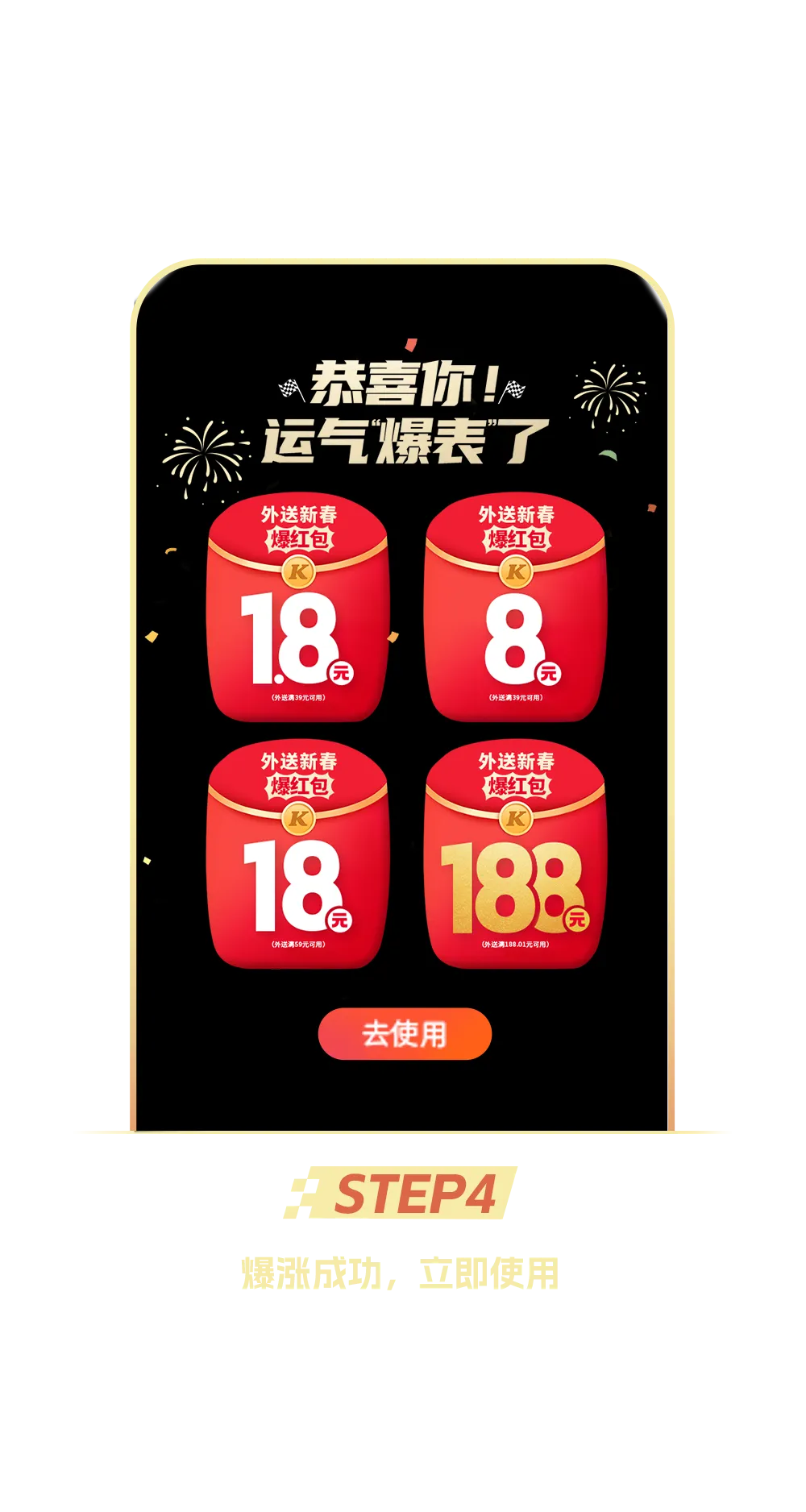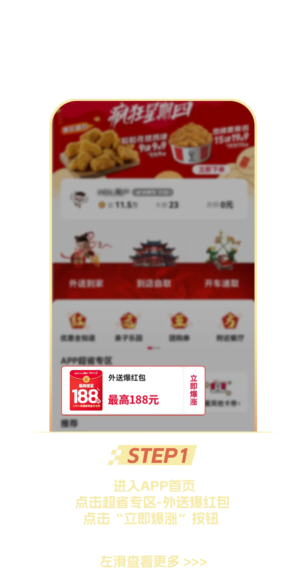 活动主题:肯德基APP过年天天爆红包最高爆出188元