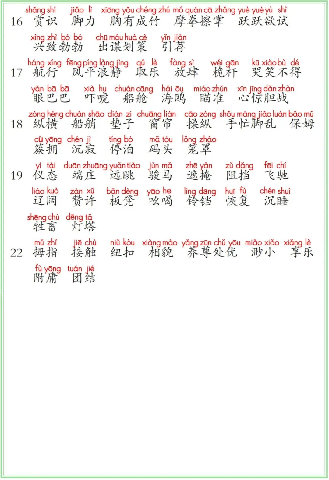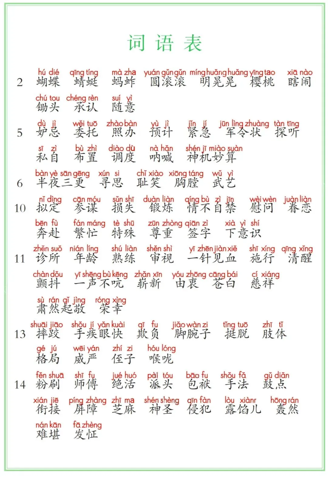 2026春五年级下册语文课后三表注音版《识字表+写字表+词语表)
