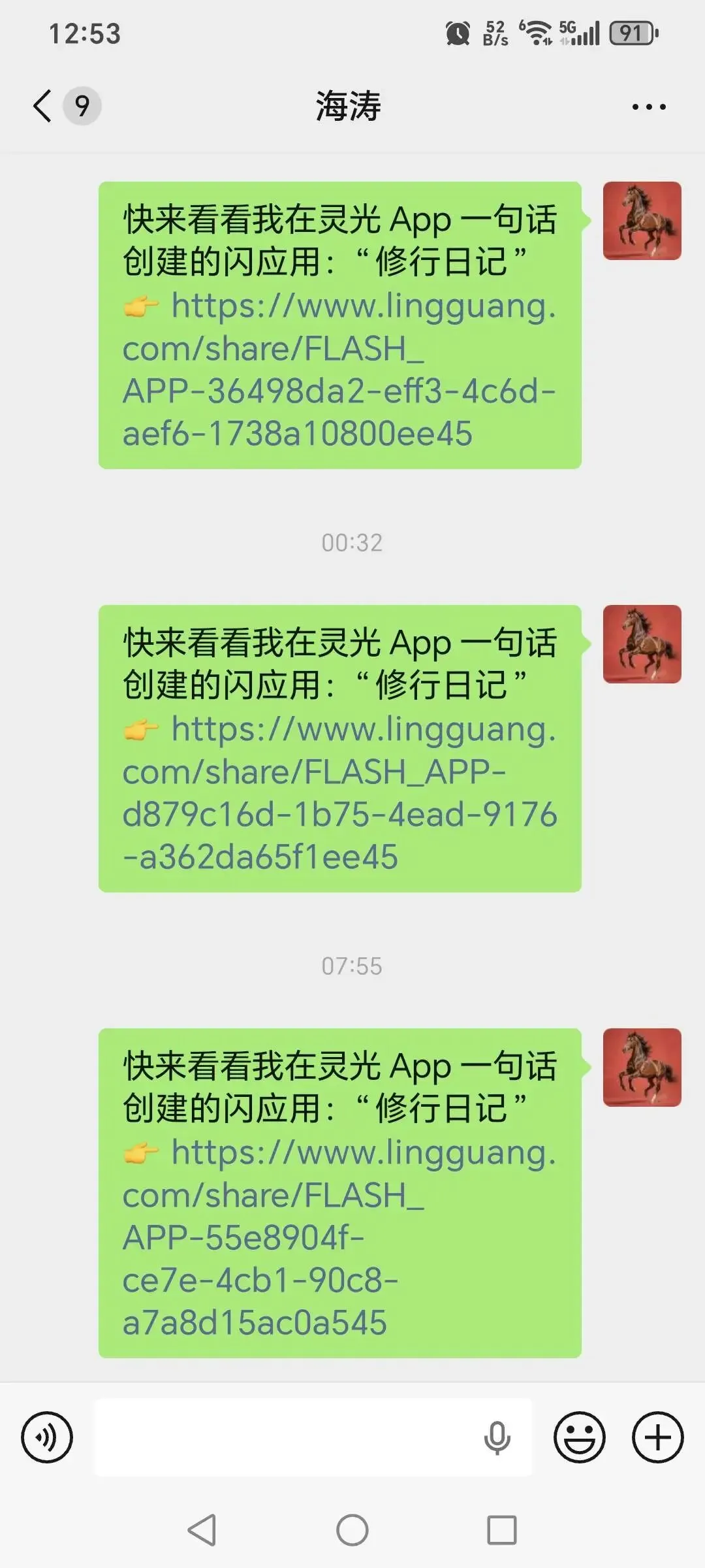 在微信聊天中直接点击朋友发来的灵光链接。