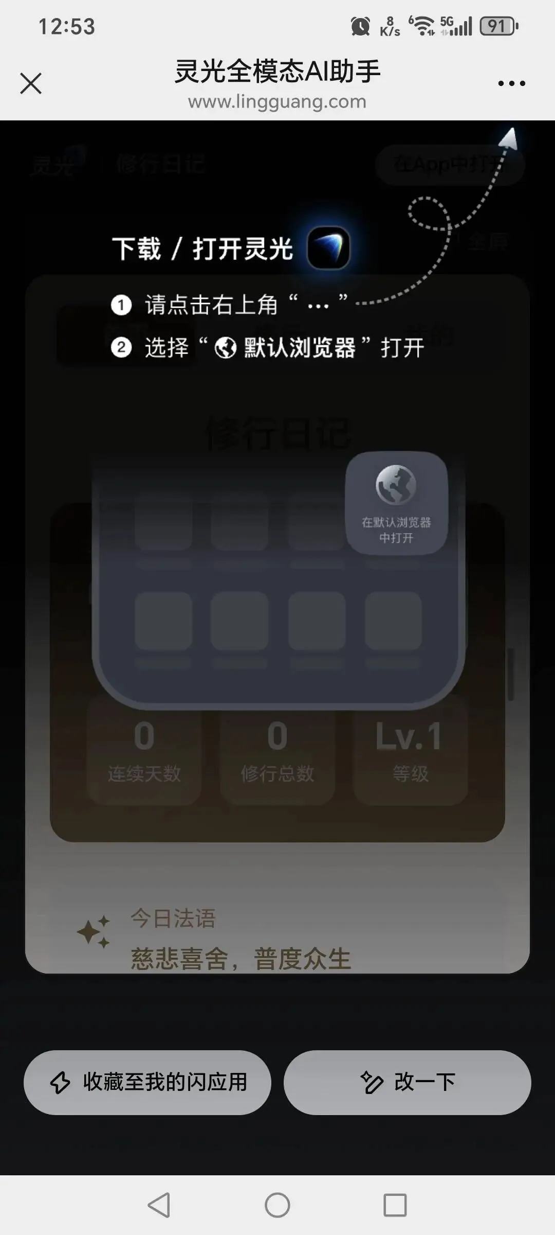 系统会自动检测已安装的灵光App,点击「在灵光App中打开」即可全屏使用。