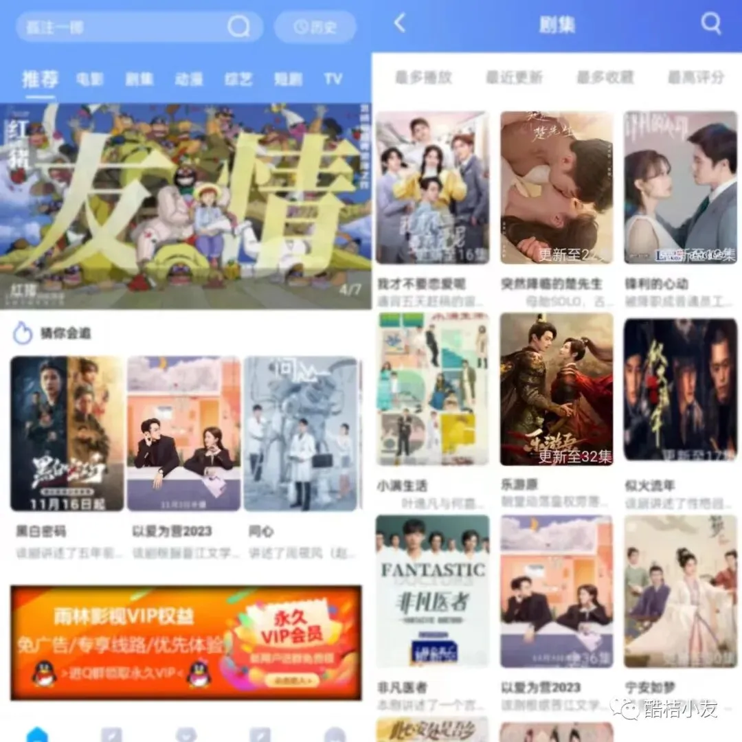 今天酷桔给大家分享一个安卓版和ios独有的追剧神器,这边不仅手机影视还有国剧分栏还有小说,短剧,TV具有独特的风格为一体的神器–雨林影视