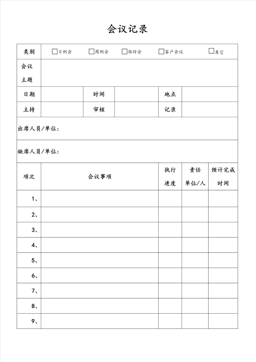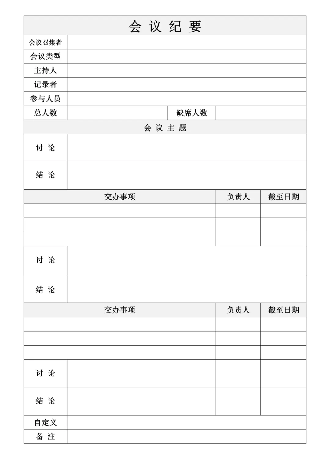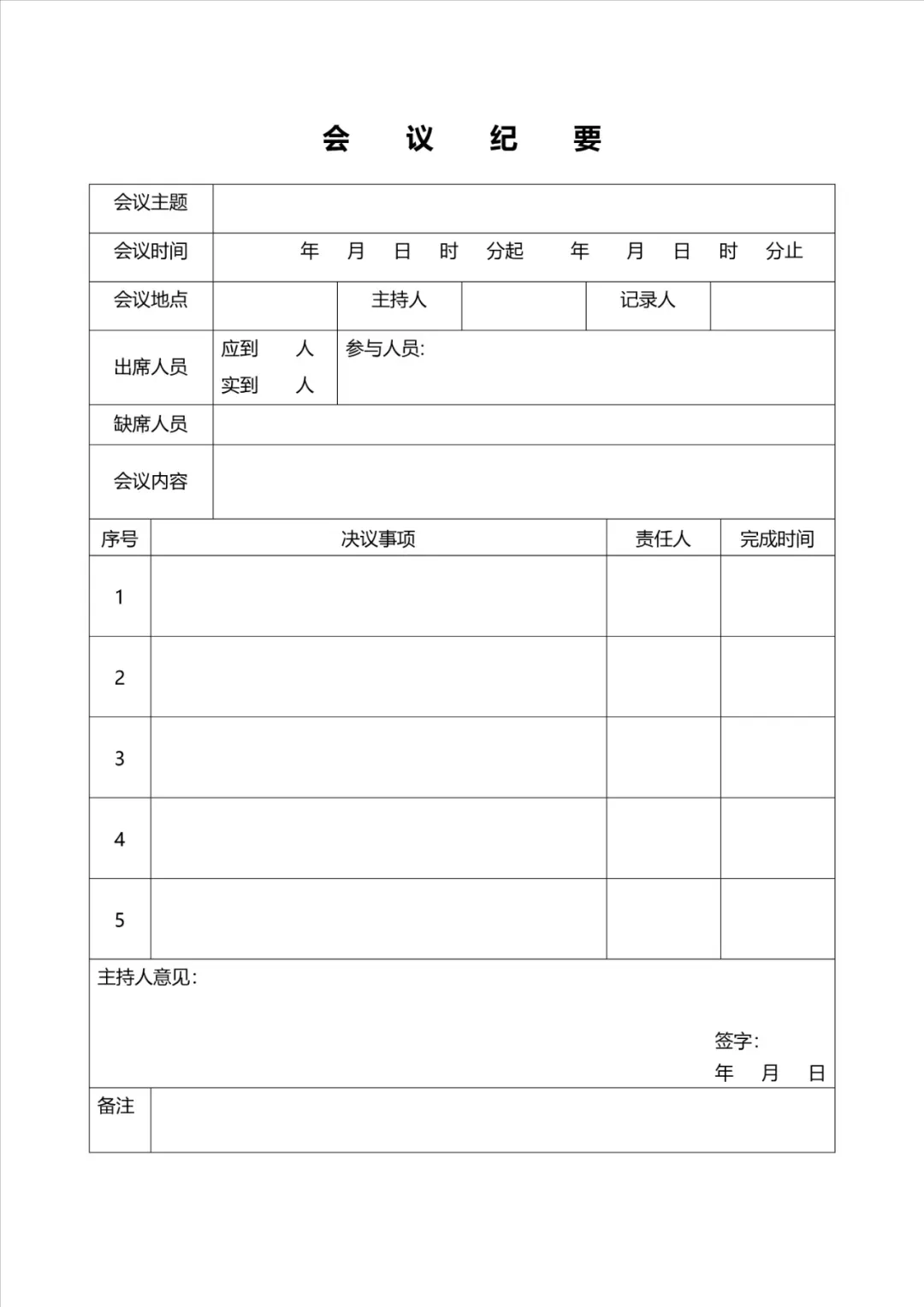 会议纪要记录模板(附word版可下载可打印)