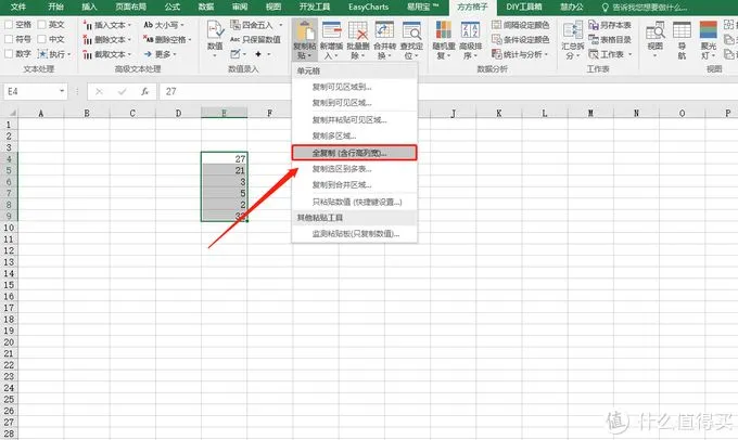 此时你只需要选择【全复制】功能即可,复制到任意表格,行高列宽完全不会变化。