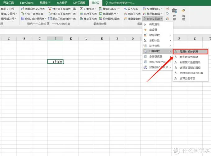 打开【自定义函数】功能,然后选择【阳历时间转农历】,即可快速将日期转换为农历日期啦,是不是超级方便?