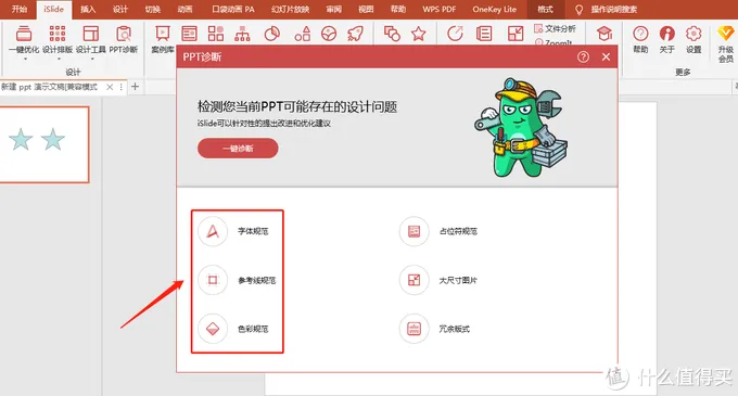 它可以进行字体规范、参考线规范和色彩规范,帮助我们迅速发现PPT存在的问题,逐步增强自己制作PPT的能力。